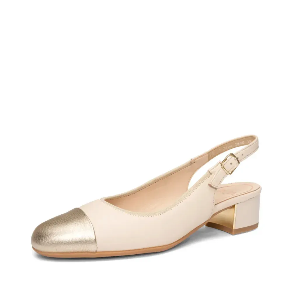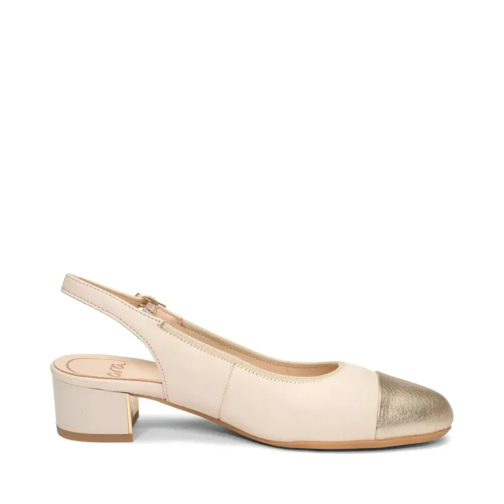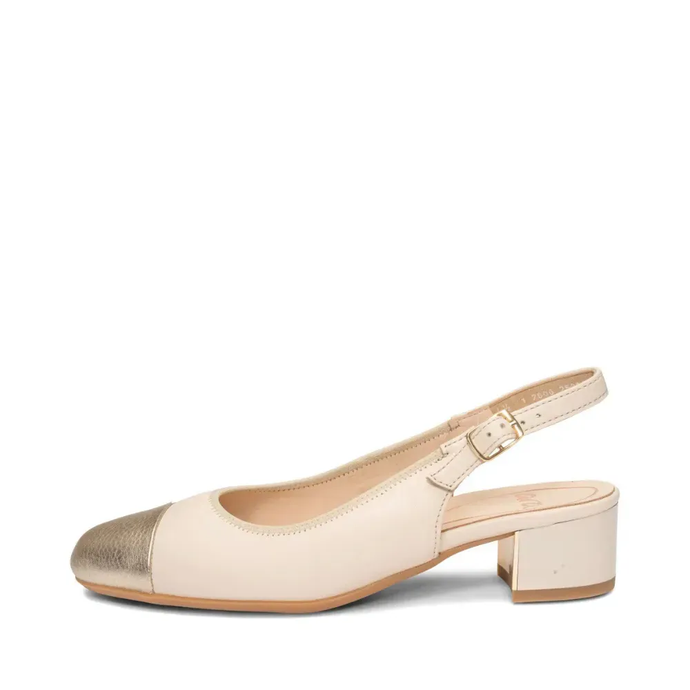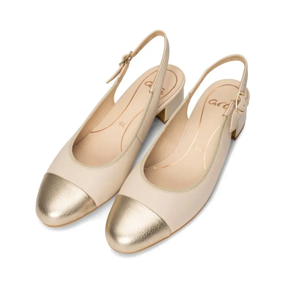 ARA dámské lodičky s volnou patou a zlatou špičkou kožené béžové | 12-35823-11 Nizza