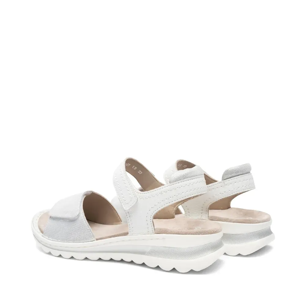Lehké letní sandály v bílo-krémovém odstínu s koženou stélkou, technologií HighSoft a praktickým zapínáním na suchý zip.