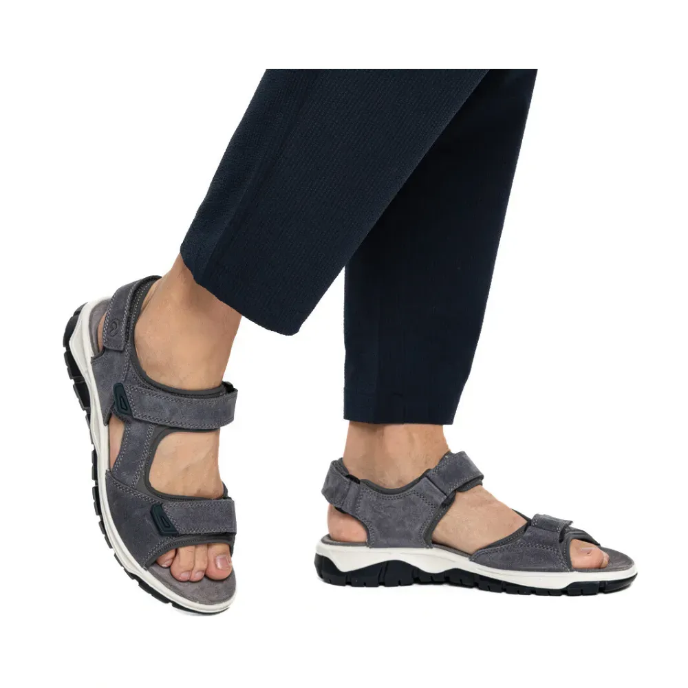 Pánské sandály ara Lino z kvalitního veluru nabízejí maximální pohodlí při letním nošení. Tři nastavitelné pásky na suchý zip umožňují perfektní přizpůsobení chodidlu, zatímco technologie HighSoft zajišťuje měkký a komfortní došlap.