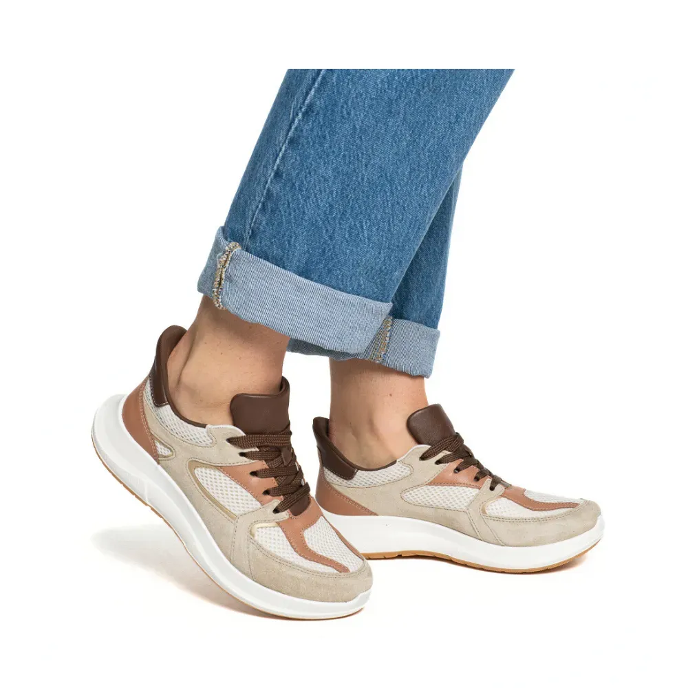 Dámské tenisky ara Motion jsou navrženy pro maximální pohodlí při chůzi a přirozený pohyb chodidla. Speciálně vyvinutá zaoblená podešev podporuje plynulé odvalování chodidla, snižuje zatížení hlezenního kloubu a rovnoměrně rozkládá tlak po celé ploše chodidla. Díky tomu poskytuje stabilitu, odlehčuje pohybový aparát a pomáhá předcházet únavě při delším nošení. Model je vyroben v komfortní šířce H, která poskytuje více prostoru pro chodidlo a je vhodná i pro širší nohy. Šněrování umožňuje přesné přizpůsobení boty chodidlu a zajišťuje stabilní držení nohy. Vnitřní část boty tvoří měkká froté podšívka, která je příjemná na nošení, dobře absorbuje vlhkost a pomáhá udržovat příjemné klima uvnitř obuvi. Součástí je také vyjímatelná stélka Ortholite potažená froté, kterou lze v případě potřeby snadno nahradit vlastní ortopedickou vložkou. Díky lehké konstrukci a ergonomické podešvi poskytují tenisky ara Motion dynamický a ke kloubům šetrný pocit při chůzi. Jsou tak ideální volbou pro každodenní nošení – do města, na procházky i pro aktivní volný čas.