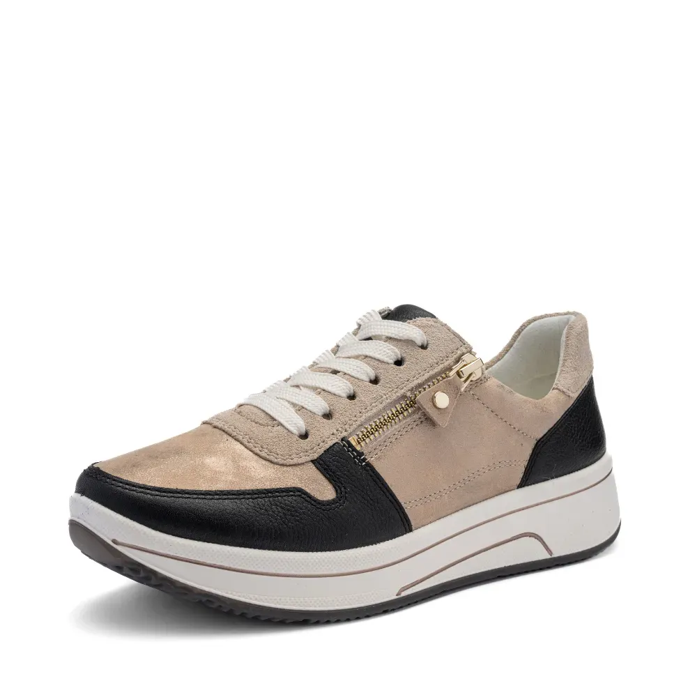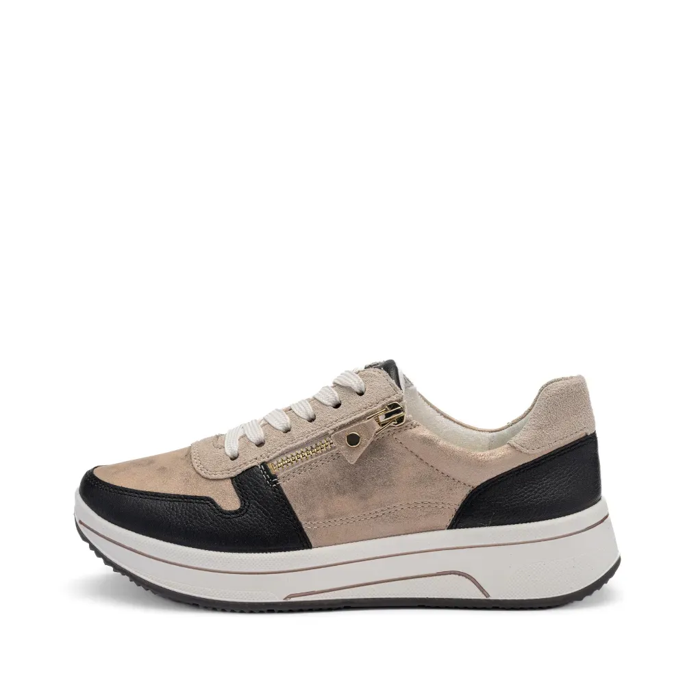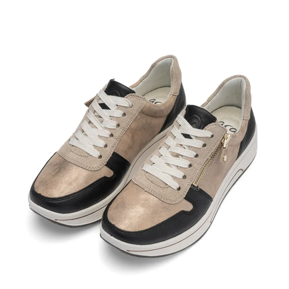 Dámské tenisky ara Sapporo s metalickými detaily, technologií HighSoft, vyjímatelnou stélkou a kombinací šněrování a zipu pro maximální pohodlí při každodenním nošení.