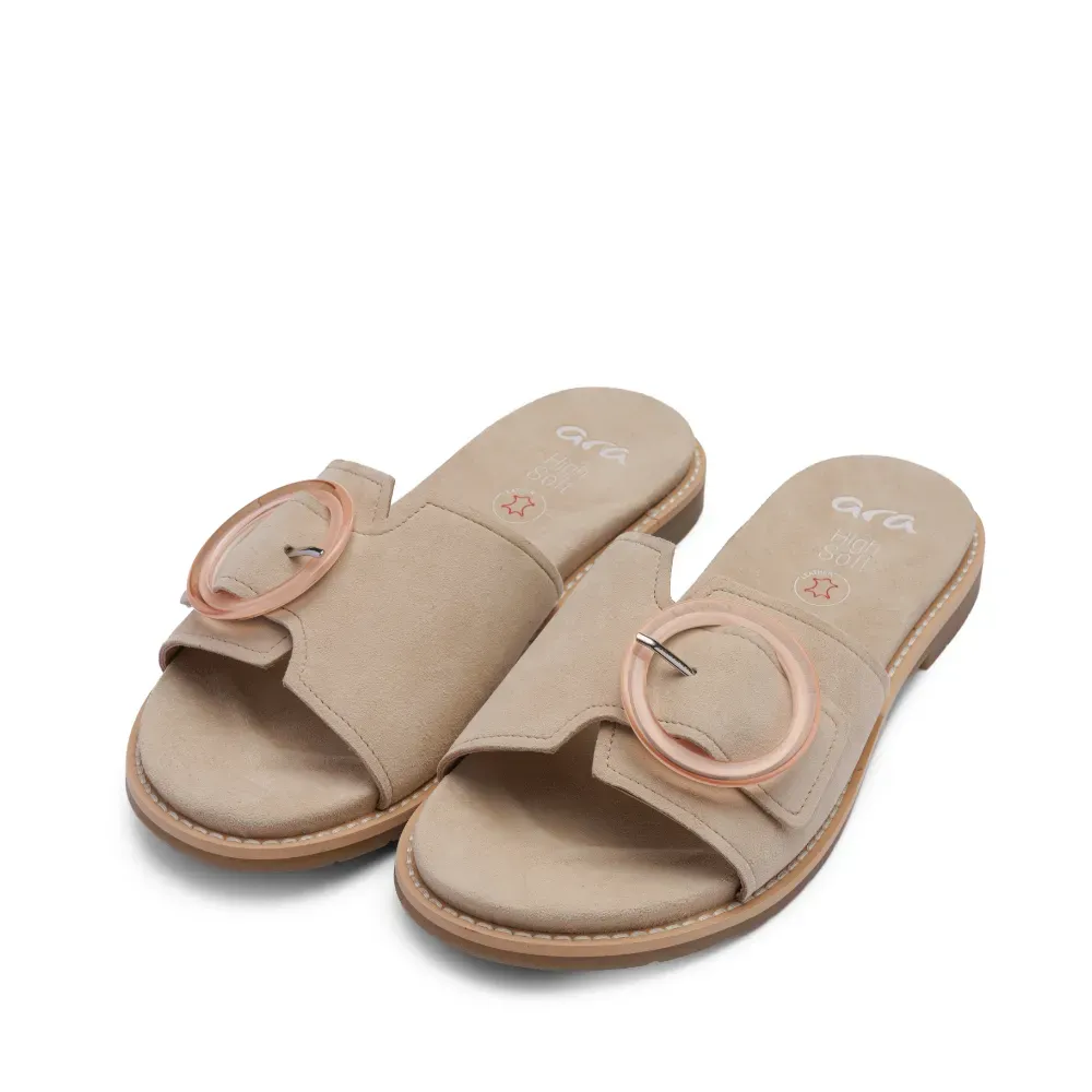 Pohodlné dámské pantofle ara Elba s koženým páskem, technologií HighSoft a měkce polstrovanou stélkou pro maximální komfort v letních dnech.