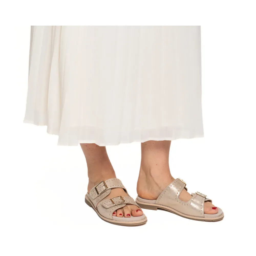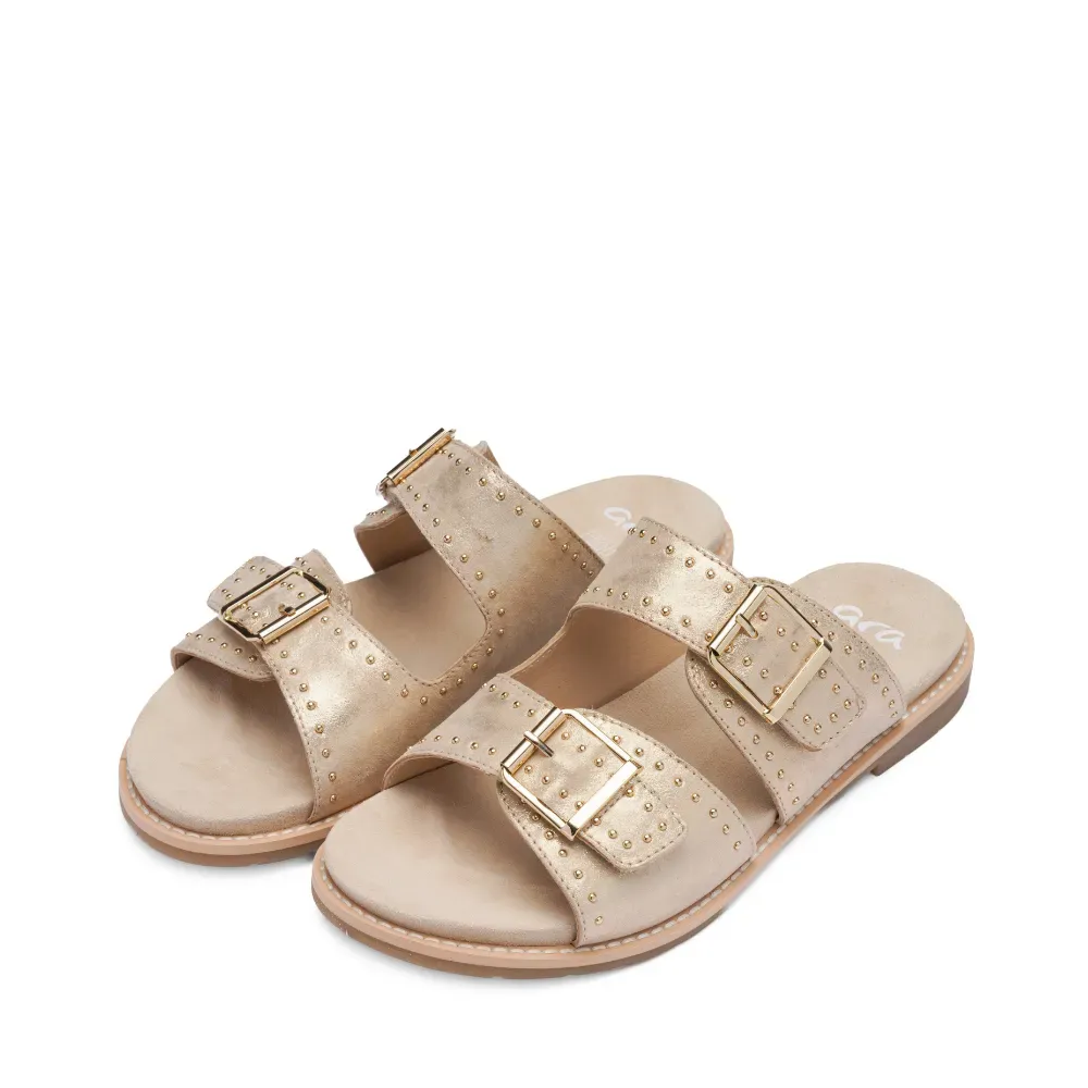 Dámské pantofle ara Elba spojují elegantní vzhled, kvalitní materiály a maximální komfort při nošení. Dva kožené pásky s ozdobnou přezkou dodávají obuvi stylový charakter a zároveň zajišťují dobré držení nohy. Pevně všitá stélka potažená kůží je měkce polstrovaná a poskytuje vysoký komfort i při delším nošení. O příjemný a měkký došlap se stará osvědčená technologie HighSoft, která kombinuje měkký svršek s flexibilní a komfortní došlapovou vrstvou. Pásky jsou podšité jemnou kůží, takže příjemně přiléhají k chodidlu a minimalizují vznik otlaků. Protiskluzová podešev navíc zajišťuje stabilitu a jistý krok při chůzi. Pantofle ara Elba jsou ideální volbou pro teplé letní dny – skvěle se hodí k ležérním outfitům, na procházky městem i na dovolenou. Pohodlný a stylový model, který si rychle oblíbíte pro každodenní nošení.