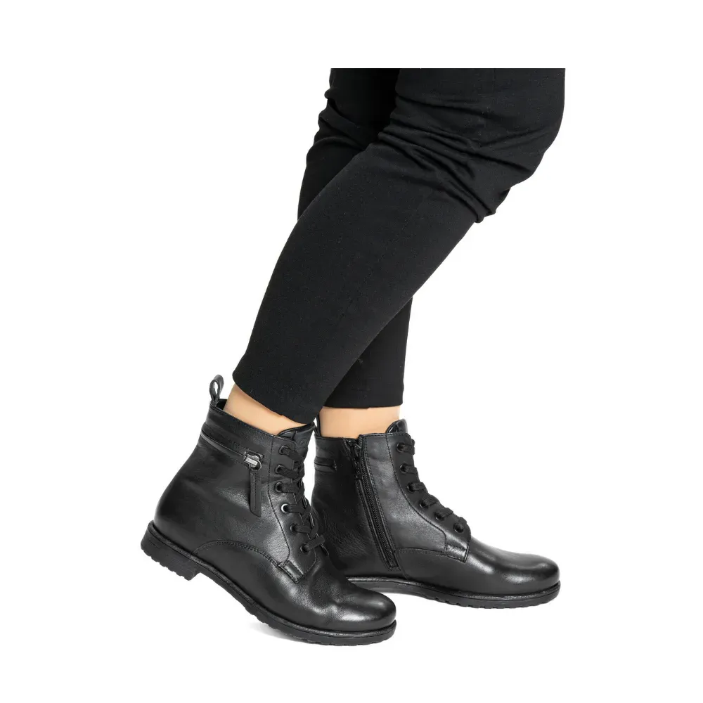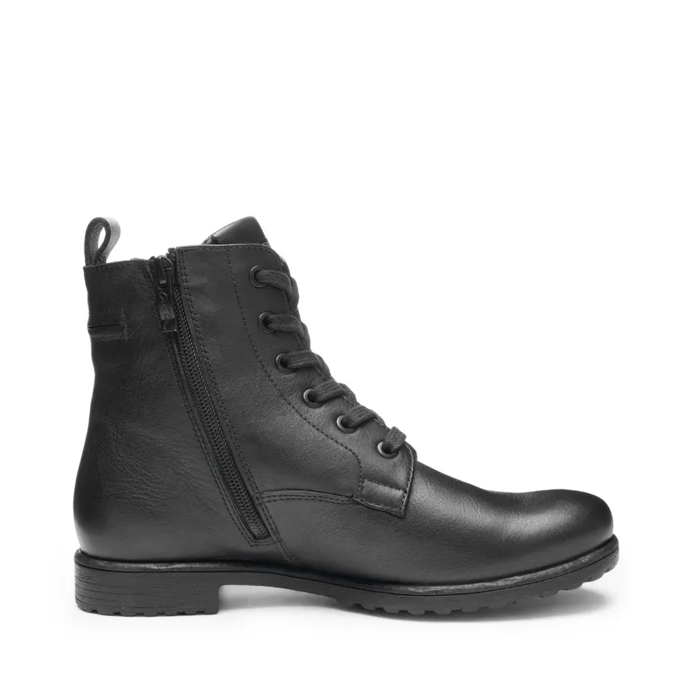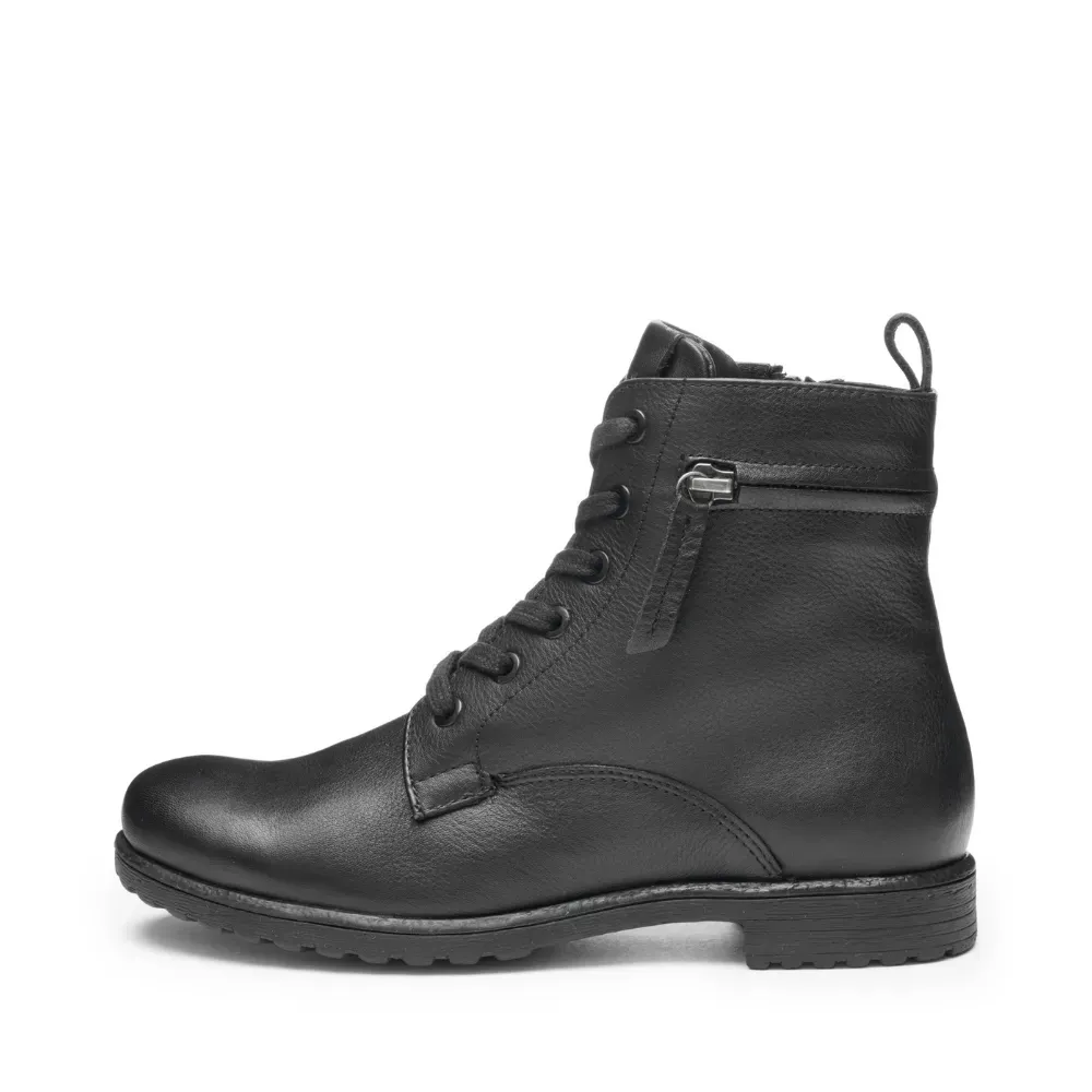 Dámské kotníkové boty Ara Liverpool z měkké hladké kůže v černé barvě. Kombinace šněrování a zipu zajišťuje dokonalé přizpůsobení noze i snadné obutí. Technologie HighSoft® a hřejivá podšívka přinášejí maximální pohodlí a teplo i v chladném období.