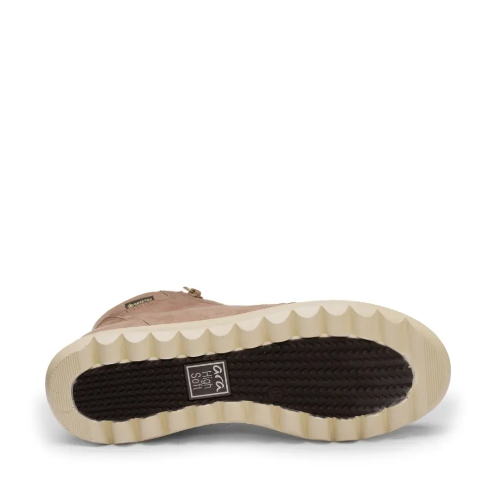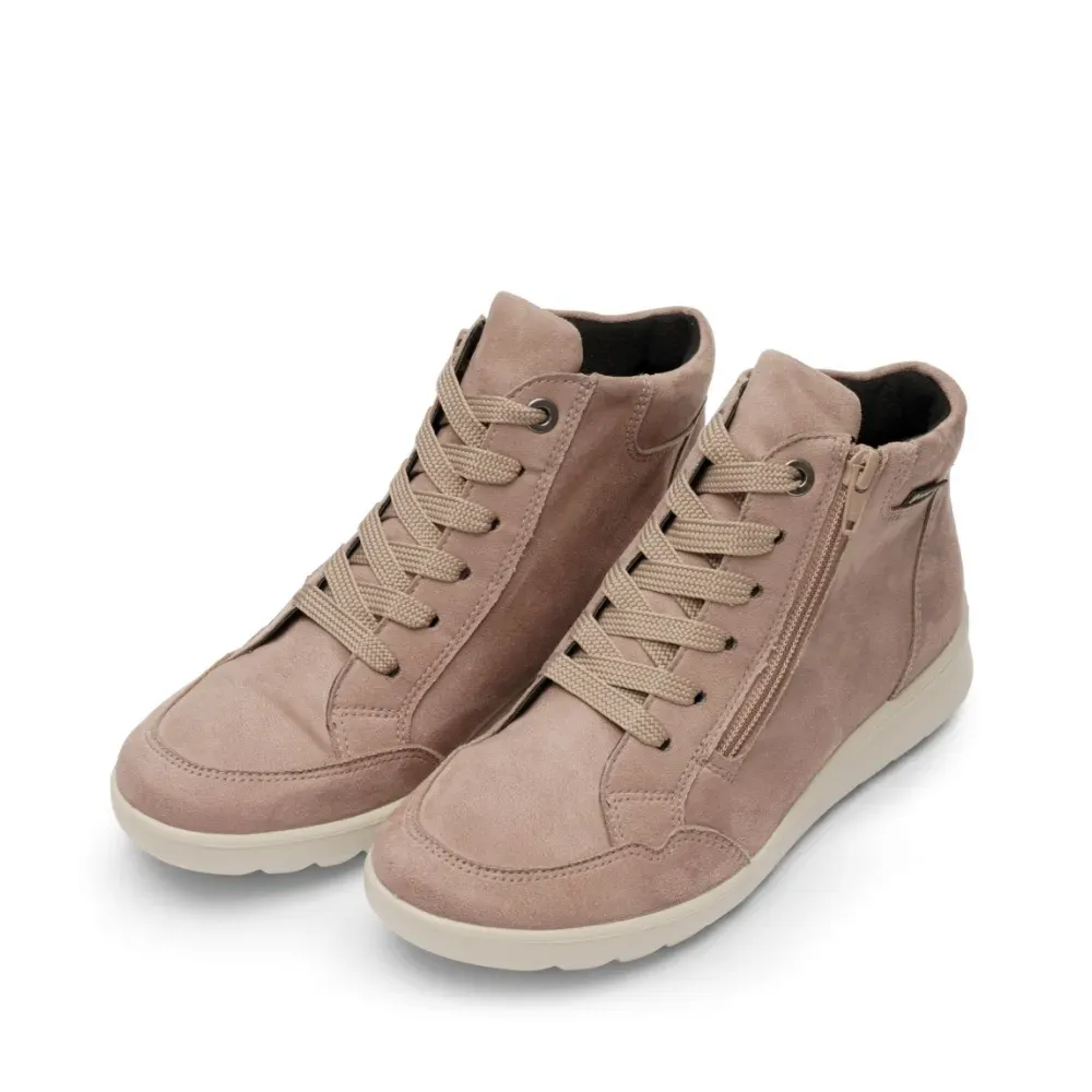 Dámské kotníkové boty Ara Toronto v béžové barvě s Gore-Tex® membránou. Teplá podšívka, vyjímatelná froté stélka, zip a šněrování pro snadné obutí a stabilní protiskluzová podešev.