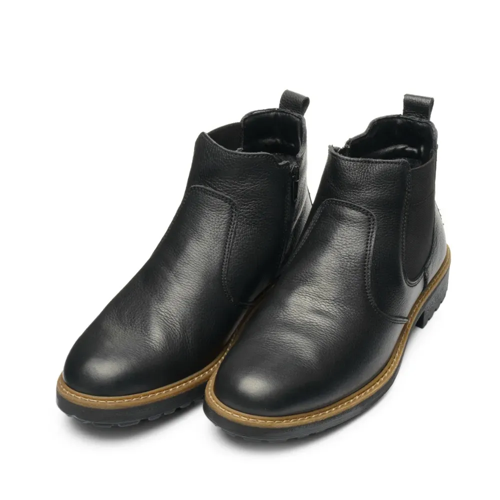 Pánská kotníková obuv Ara Frederik v elegantním černém provedení je ideálním společníkem do nepříznivého počasí. Vyrobena z kvalitní hladké kůže, která působí odolně a zároveň nadčasově, poskytuje perfektní kombinaci stylu, funkčnosti a komfortu. Díky voděodolné a prodyšné membráně Gore-Tex® zůstávají nohy v suchu i během deštivých dnů, zatímco měkká textilní podšívka s hřejivým efektem se postará o příjemné teplo. Vyjímatelná stélka potažená textilií zajišťuje měkký došlap a možnost výměny za individuální ortopedickou vložku. Praktické boční zapínání na zip v kombinaci s elastickou vsadkou na druhé straně umožňuje snadné obutí a perfektní přizpůsobení tvaru nohy. Profilovaná, protiskluzová podešev poskytuje jistotu kroku i na kluzkém povrchu. Díky svému jednoduchému a nadčasovému designu se tyto boty snadno kombinují s ležérním i formálnějším outfitem – ideální volba pro každodenní nošení v chladných podzimních a zimních dnech.