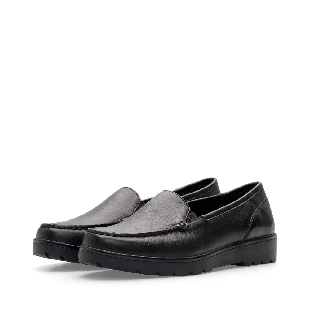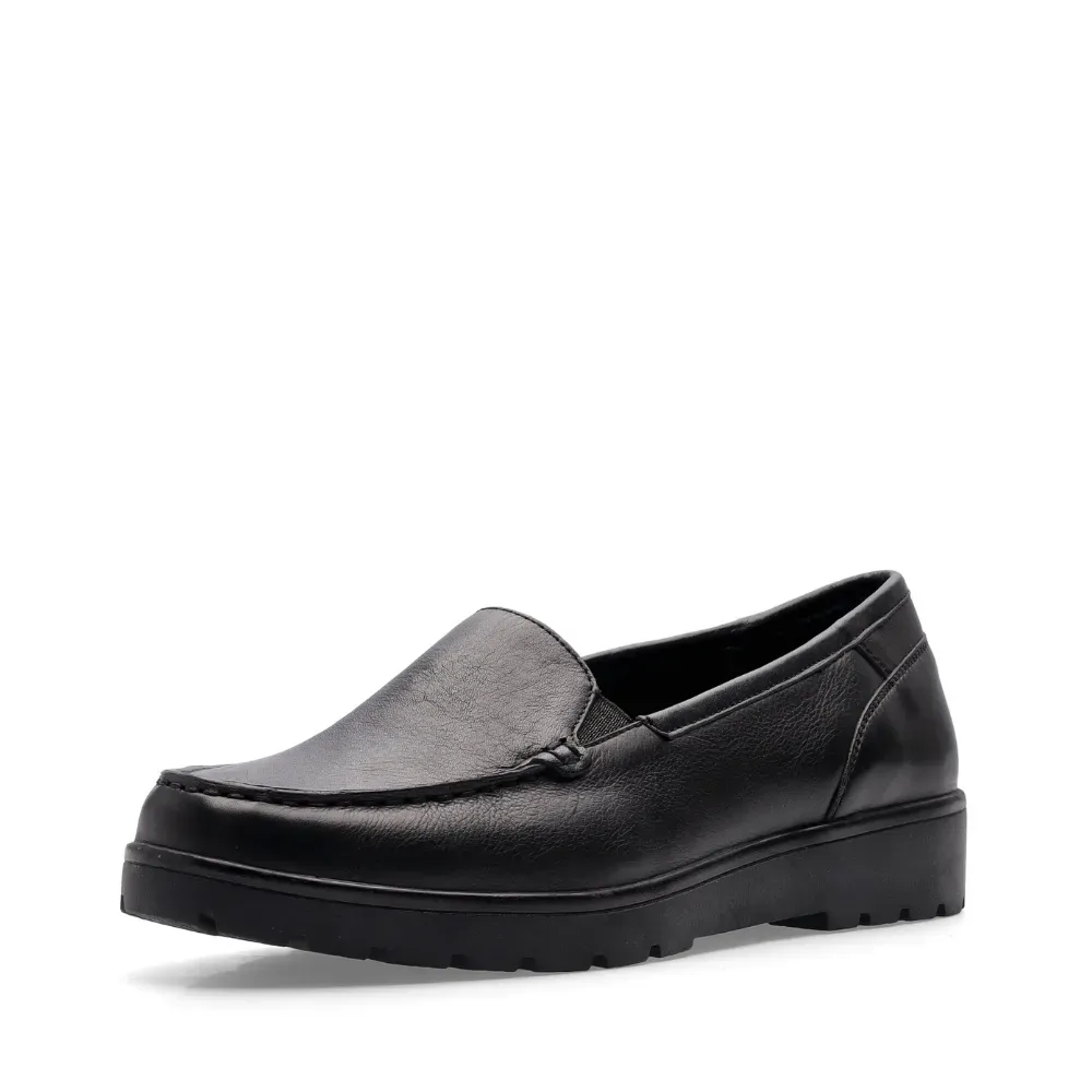 Dámské mokasíny Ara v elegantní černé barvě spojují komfort, kvalitu a decentní styl. Svršek z poddajné a pevnější hladké kůže se přizpůsobí chodidlu, zatímco drobné pruženky po stranách usnadní nazouvání a zajistí perfektní přizpůsobení nártu.