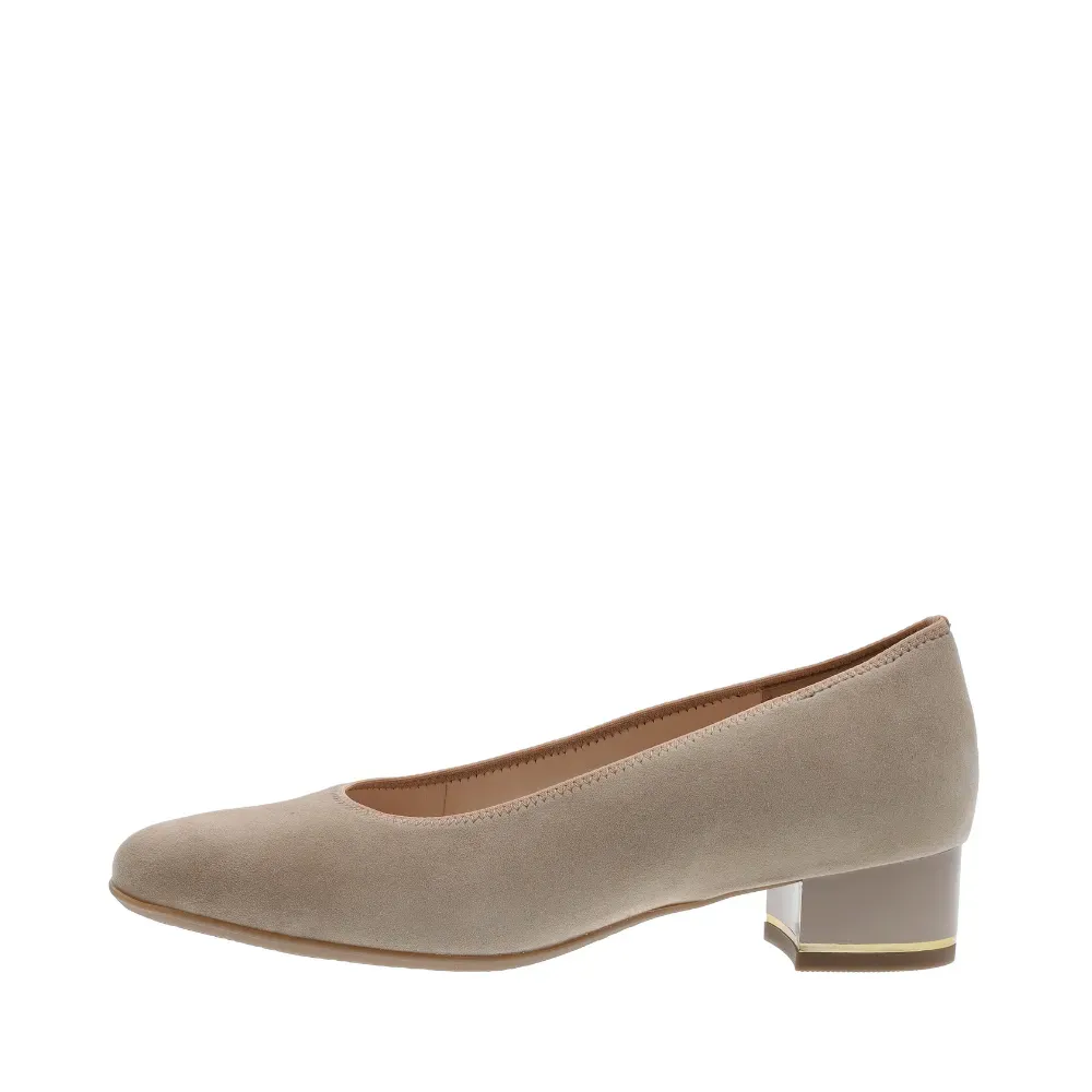 Elegantní dámské lodičky Ara Graz v béžové barvě z jemně broušené kůže kombinují nadčasový styl a maximální pohodlí. Díky technologii HighSoft® nabízejí měkký došlap, výjimečnou pružnost a komfort i při celodenním nošení. Širší střih H a stabilní blokový podpatek o výšce 3,5 cm zaručují dokonalé padnutí i elegantní vzhled.