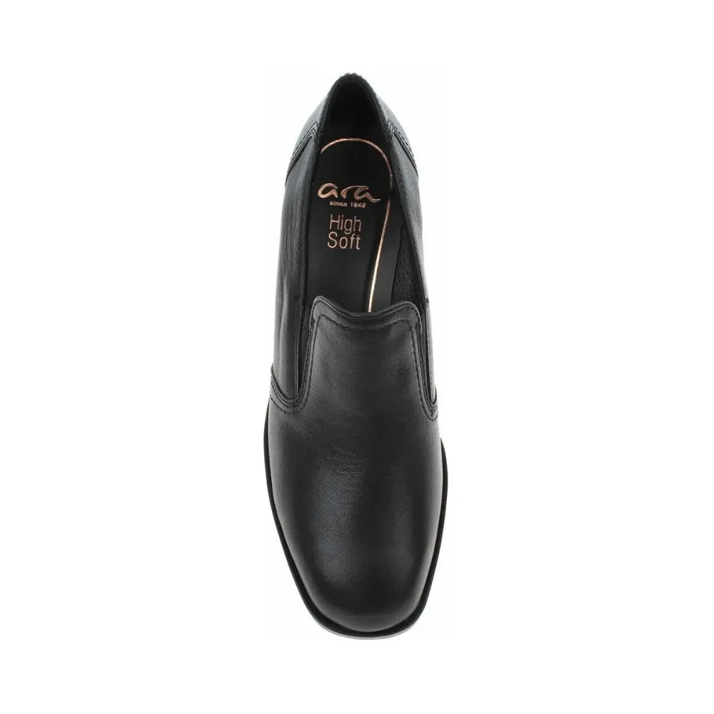 Elegantní dámské lodičky Ara Brighton v černé barvě z měkké hladké kůže nabízejí komfort i styl v jednom. Díky technologii HighSoft® poskytují měkký došlap, výbornou flexibilitu a celodenní pohodlí. Stabilní širší podpatek dodává botě elegantní vzhled i jistotu při chůzi.