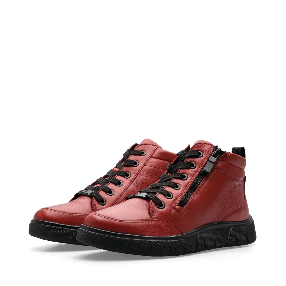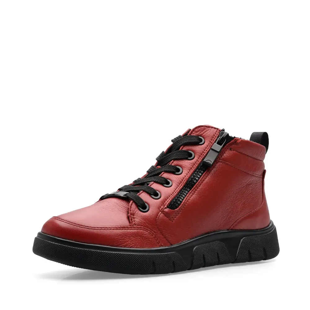 ARA dámské kotníkové tenisky s bočním zipem kožené červené | 12-24453-19 Rom