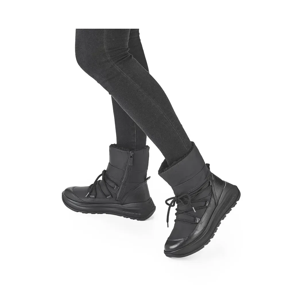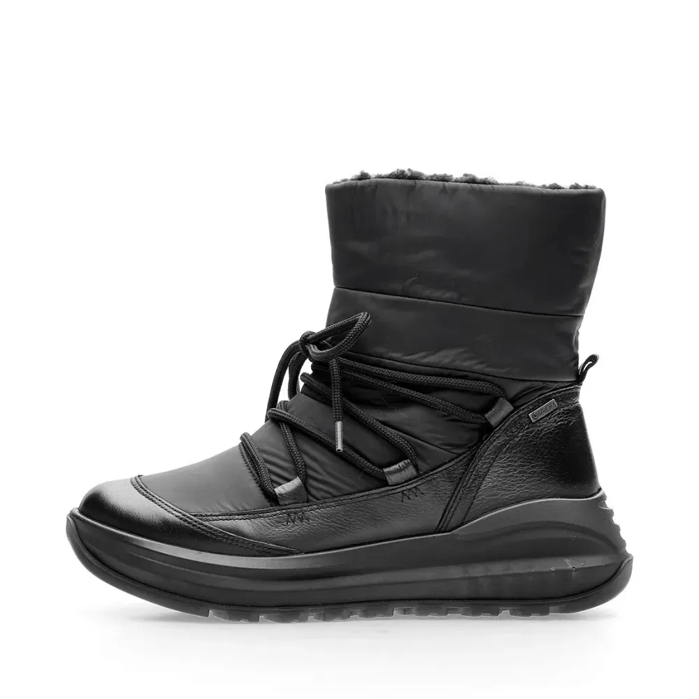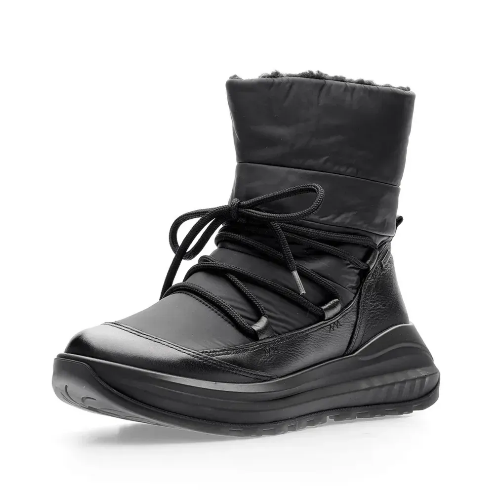 Stylové dámské zimní boty Ara Massa v černé barvě s membránou Gore-Tex®, teplou podšívkou a klínovou protiskluzovou podešví. Kombinace šněrování a zipu, vyjímatelná bambusová stélka a technologie HighSoft® zaručují sucho, teplo a pohodlí i v náročných podmínkách.