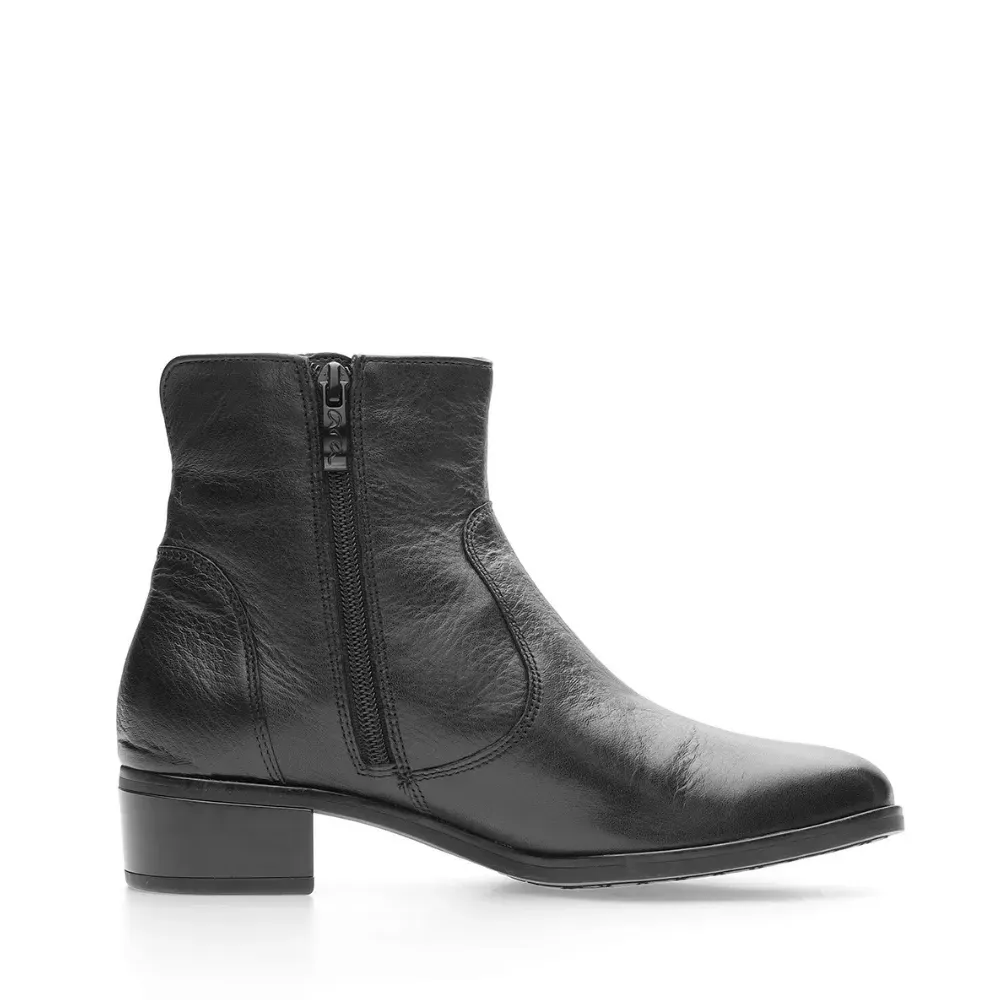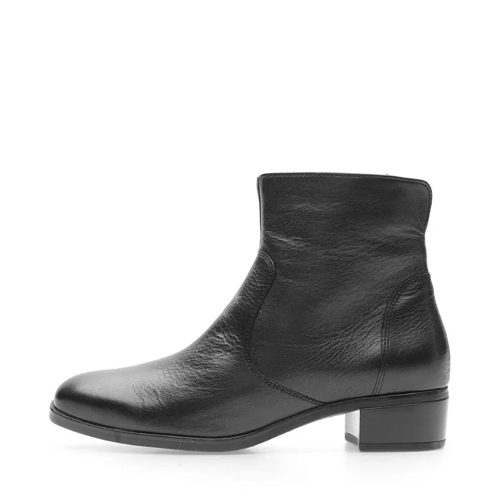 Elegantní dámský kotník Ara Graz v černé hladké kůži s teplou podšívkou a praktickým zipem. Díky technologii HighSoft®, vyjímatelné stélce a šíři H nabízí maximální pohodlí i nadčasový vzhled.