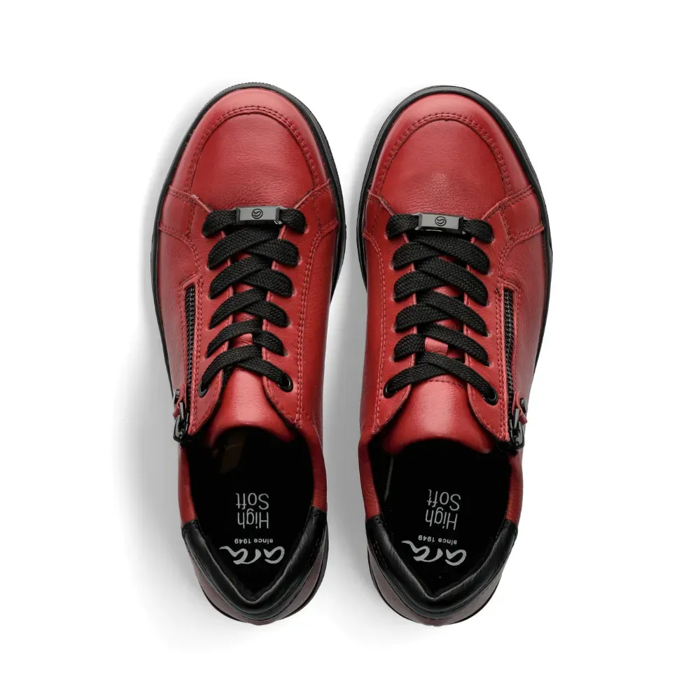 Dámské tenisky Ara Rom v červené kůži s froté podšívkou a vyjímatelnou stélkou. Díky technologii HighSoft® a bambusovému materiálu uvnitř nabízejí maximální pohodlí pro každý den.