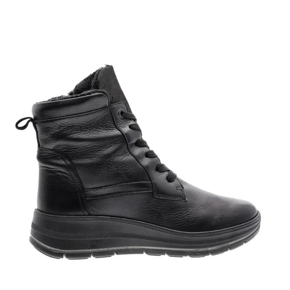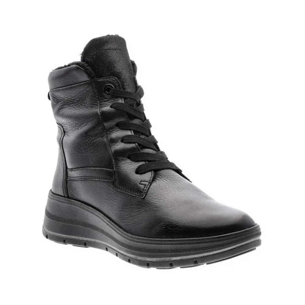 Dámský kotník Ara v černé kůži se sportovním designem, širokými tkaničkami a teplou podšívkou. Díky technologii HighSoft®, vyjímatelné stélce a pohodlné latexové podešvi nabízí komfort i v chladných dnech.