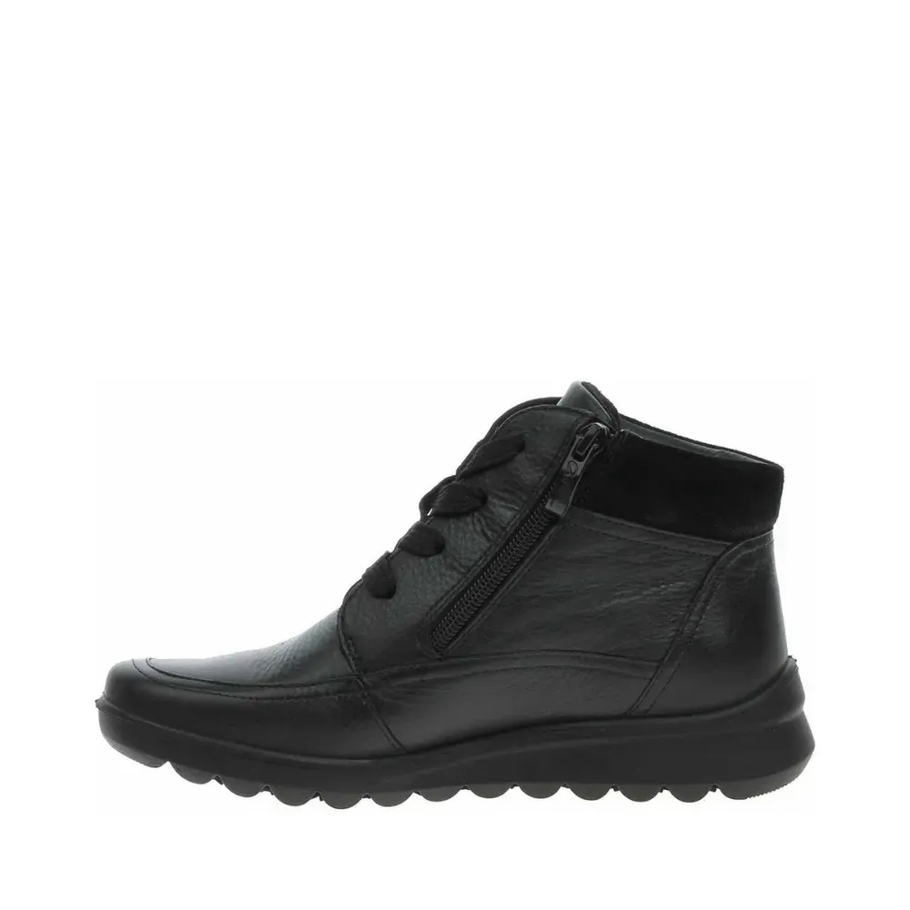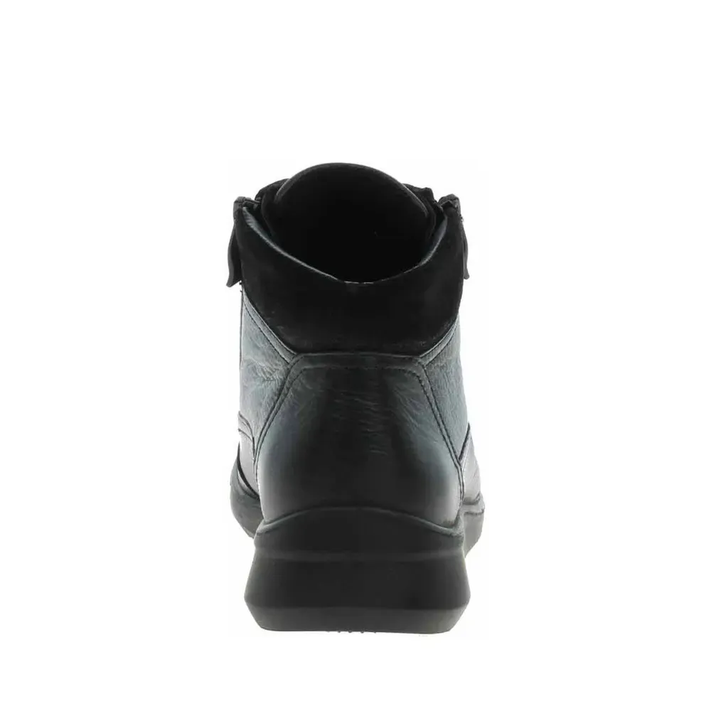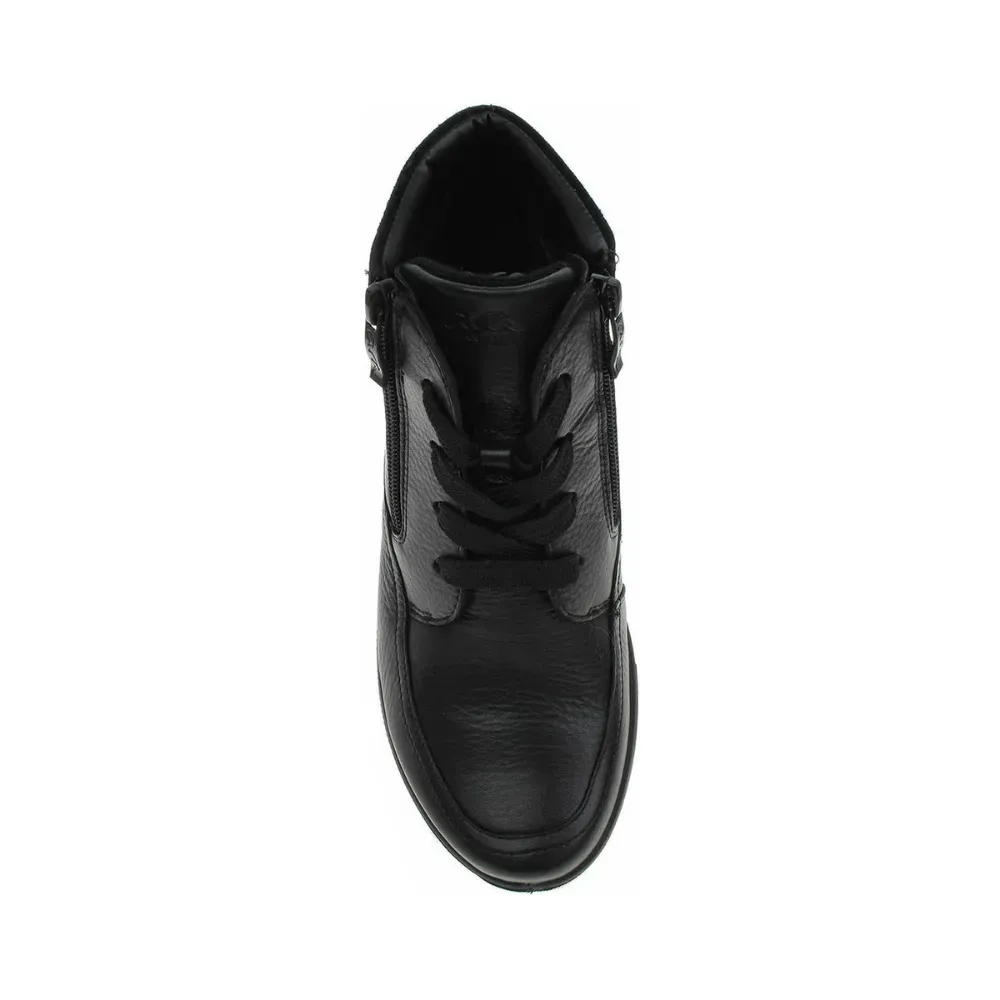 Dámský kotník Toronto v černé kůži s praktickým šněrováním a dvěma zipy pro snadné obutí. Díky technologii HighSoft®, měkké vyjímatelné vložce Ara bamboo® a teplejší froté podšívce nabízí pohodlí a jistotu při každém kroku.
