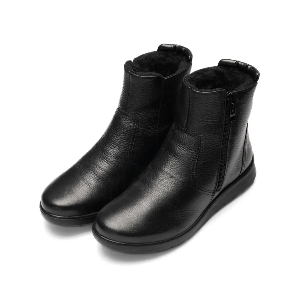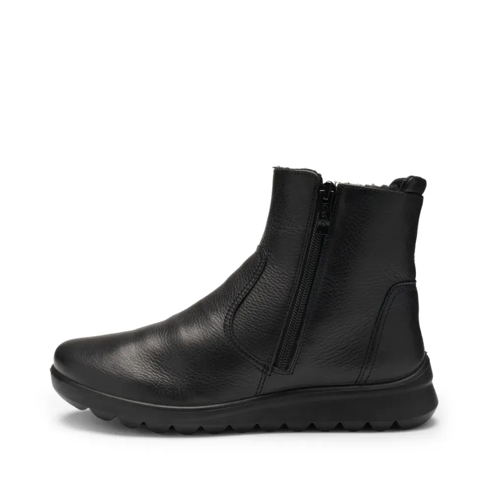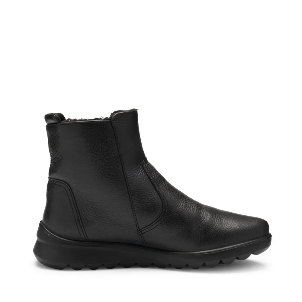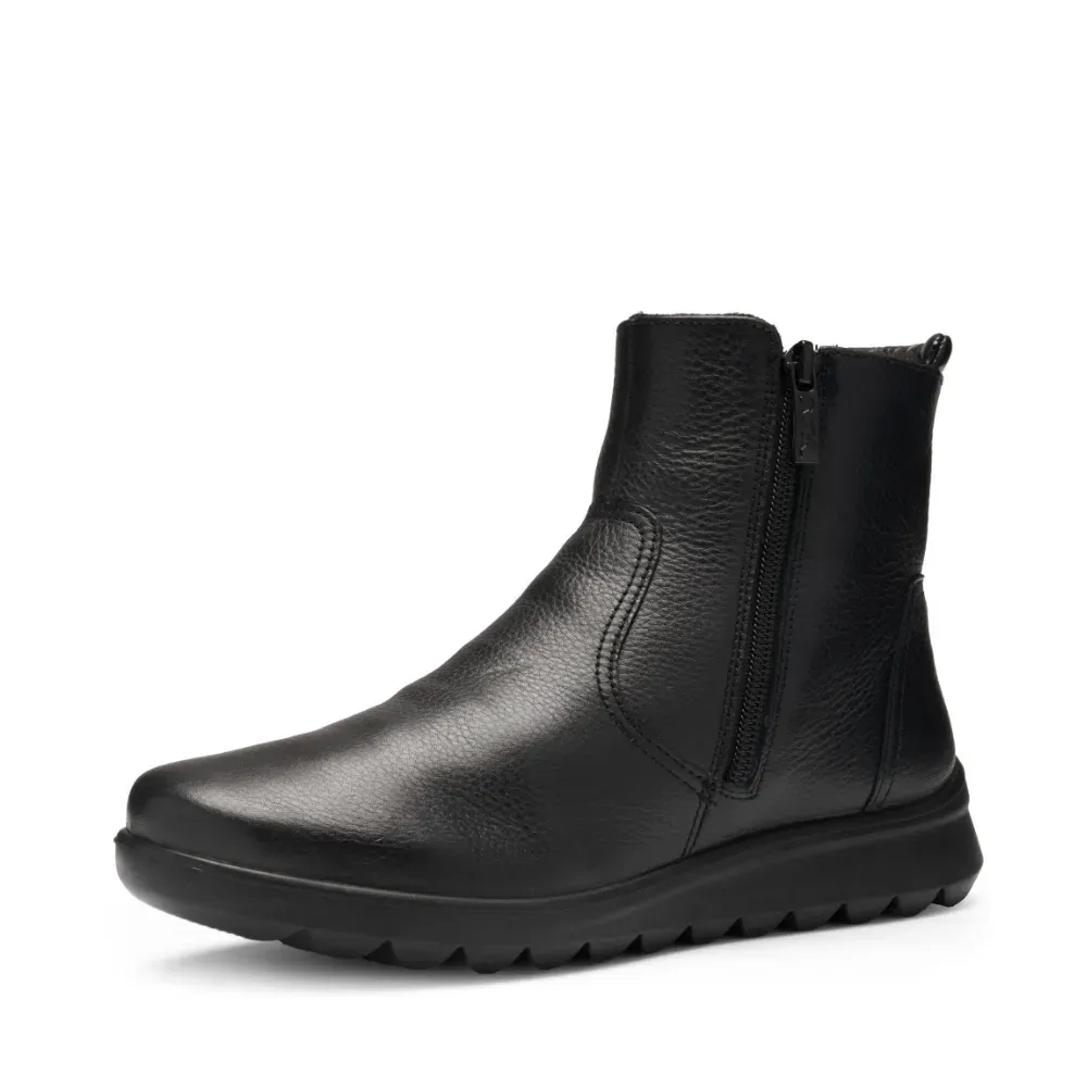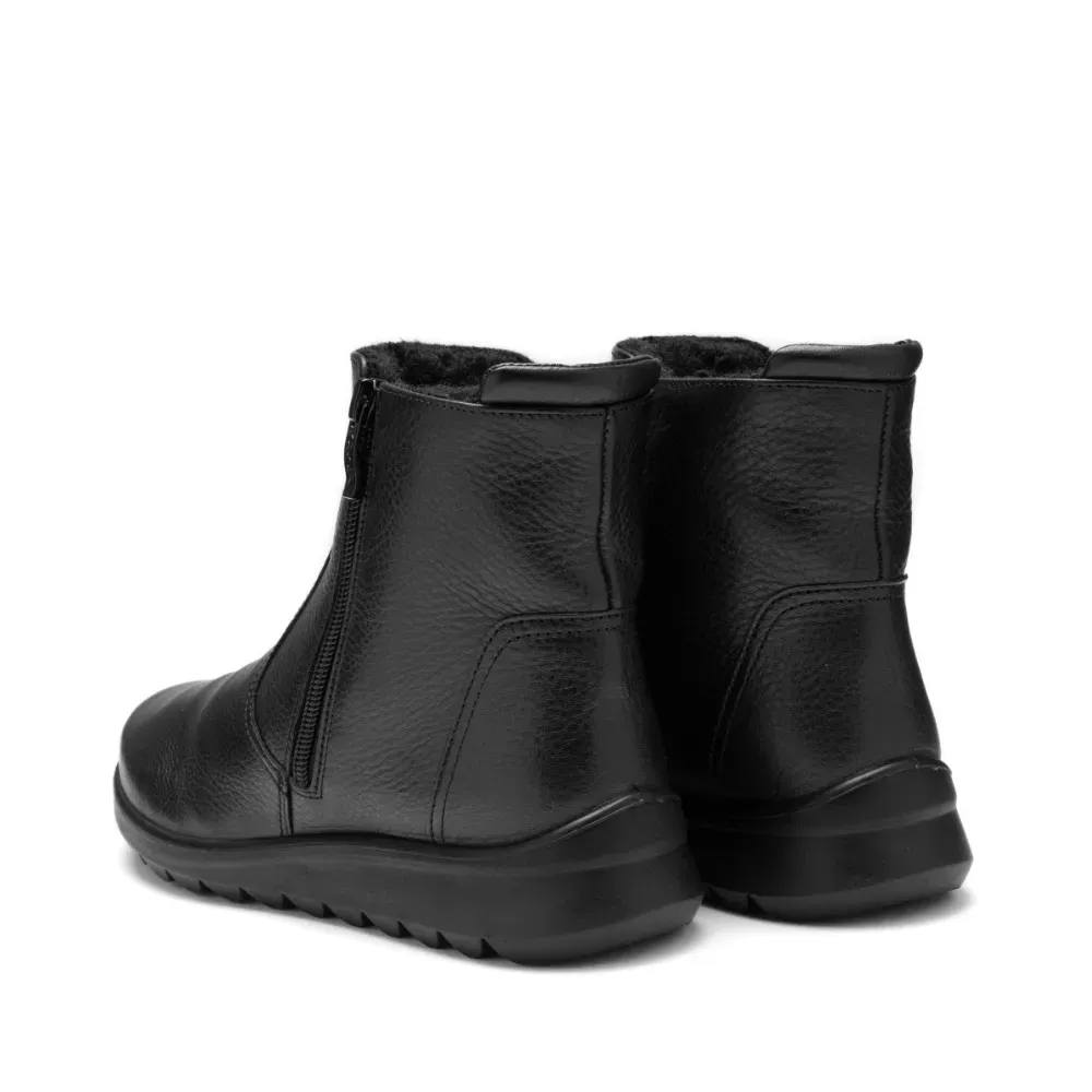Dámský kožený kotník Toronto v černé barvě s hřejivou vlněnou podšívkou. Díky technologii HighSoft®, vyjímatelné stélce a praktickému zipu poskytuje pohodlí i při chladném počasí.