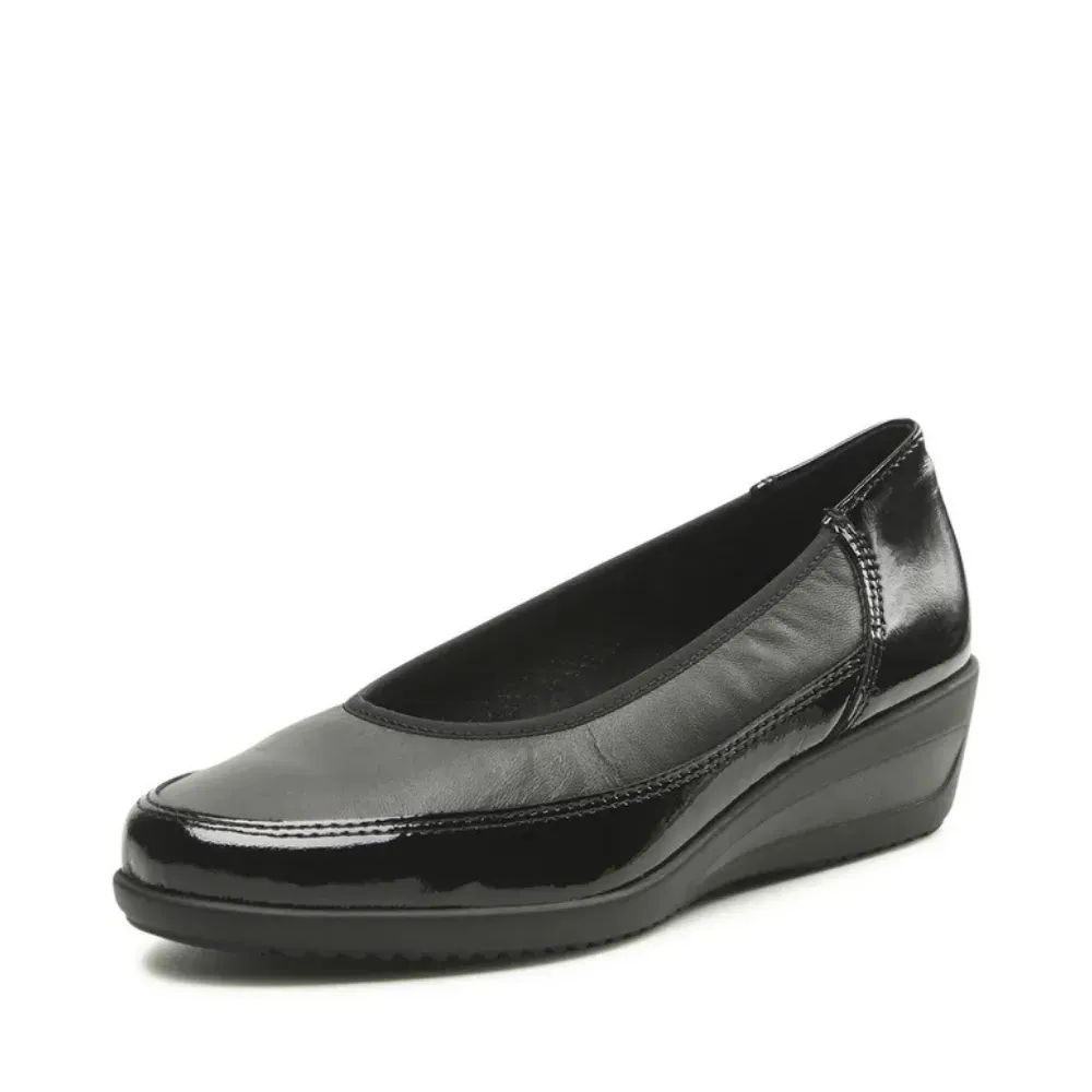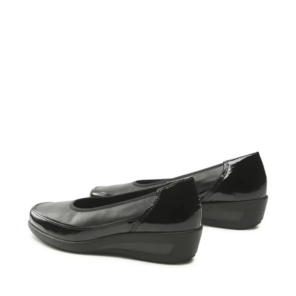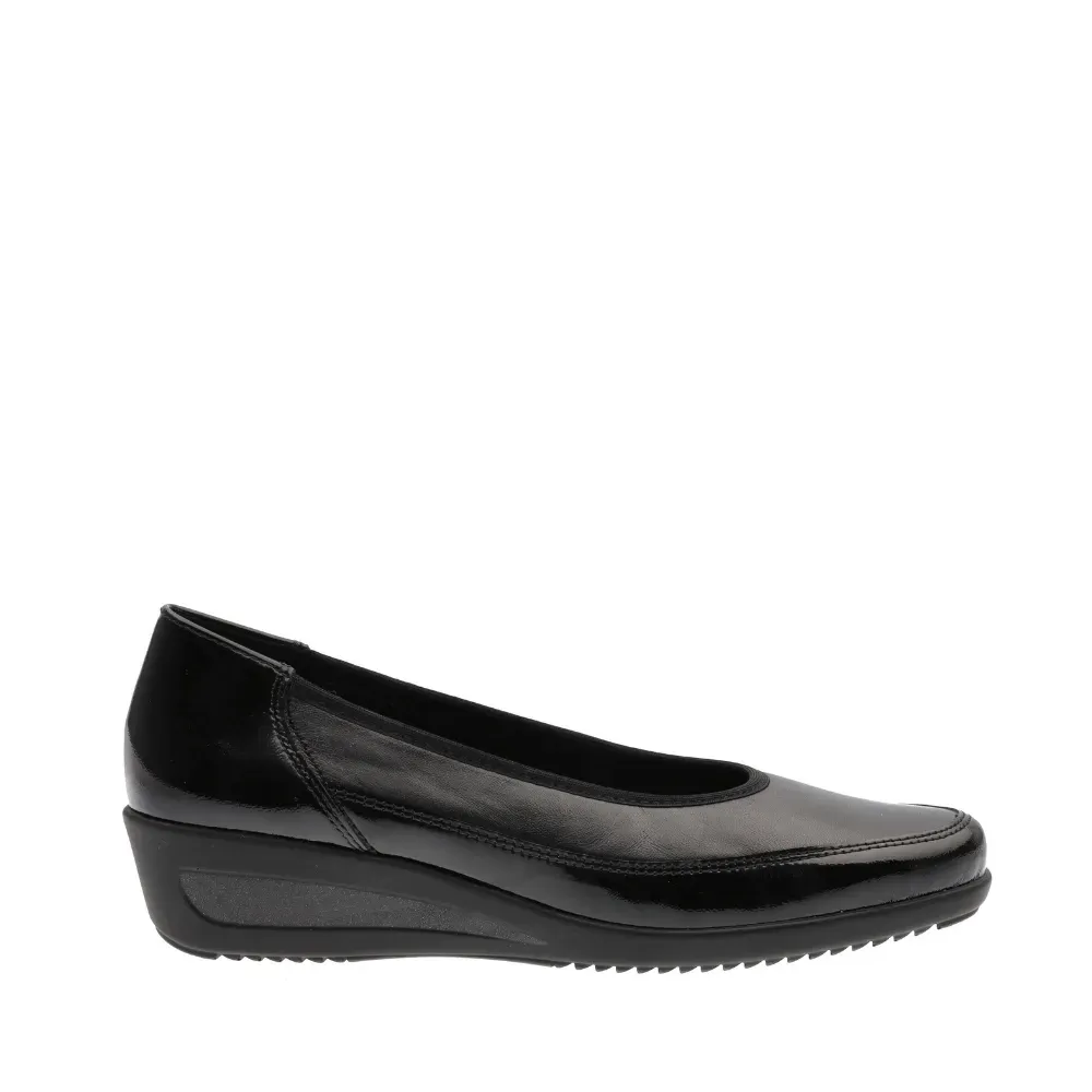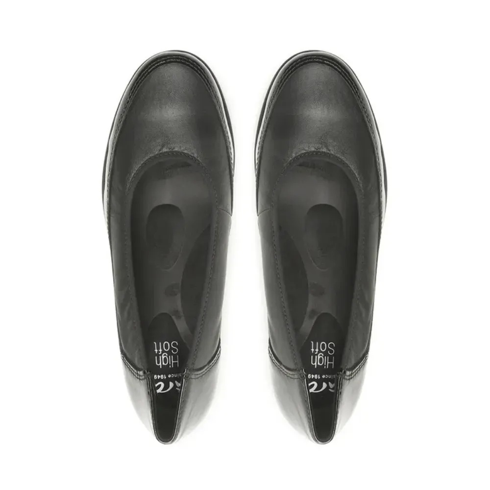 Dámské kožené baleríny Zürich v černé barvě s pohodlným klínkem a šířkou H. Model z řady HighSoft® nabízí extra měkkou vyjímatelnou stélku a pružný lem pro perfektní přizpůsobení širšímu chodidlu.