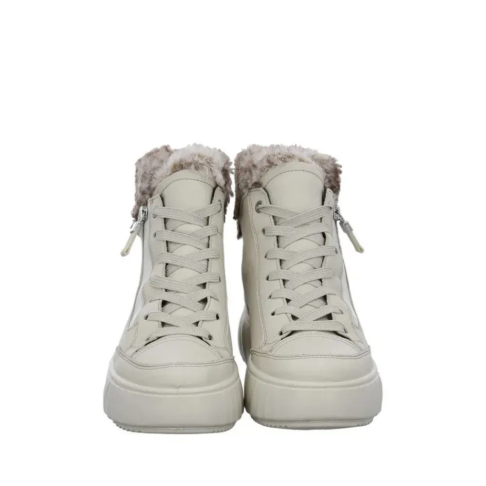Dámský zimní kotník Monaco v krémové kůži s kožešinkovým lemem a funkčním zipem. Díky teplé podšívce, membráně Gore-Tex® a technologii HighSoft® nabízí spolehlivou ochranu proti chladu i vlhkosti a pohodlí při každém kroku.
