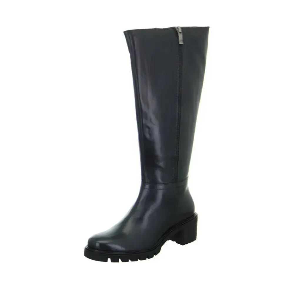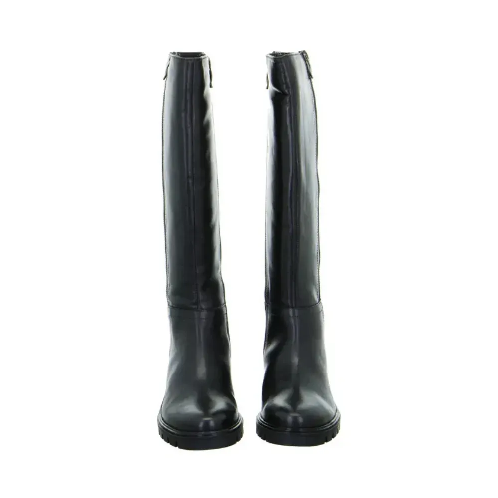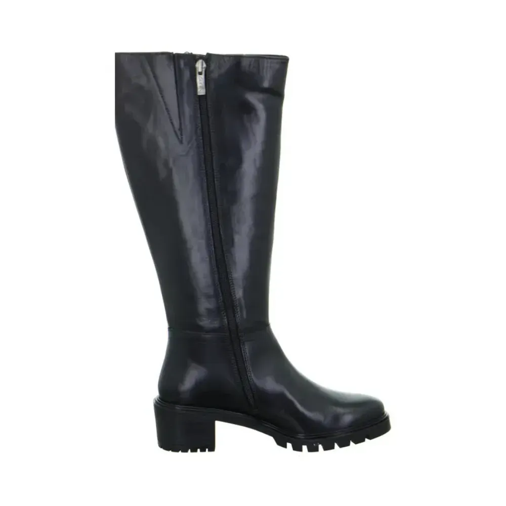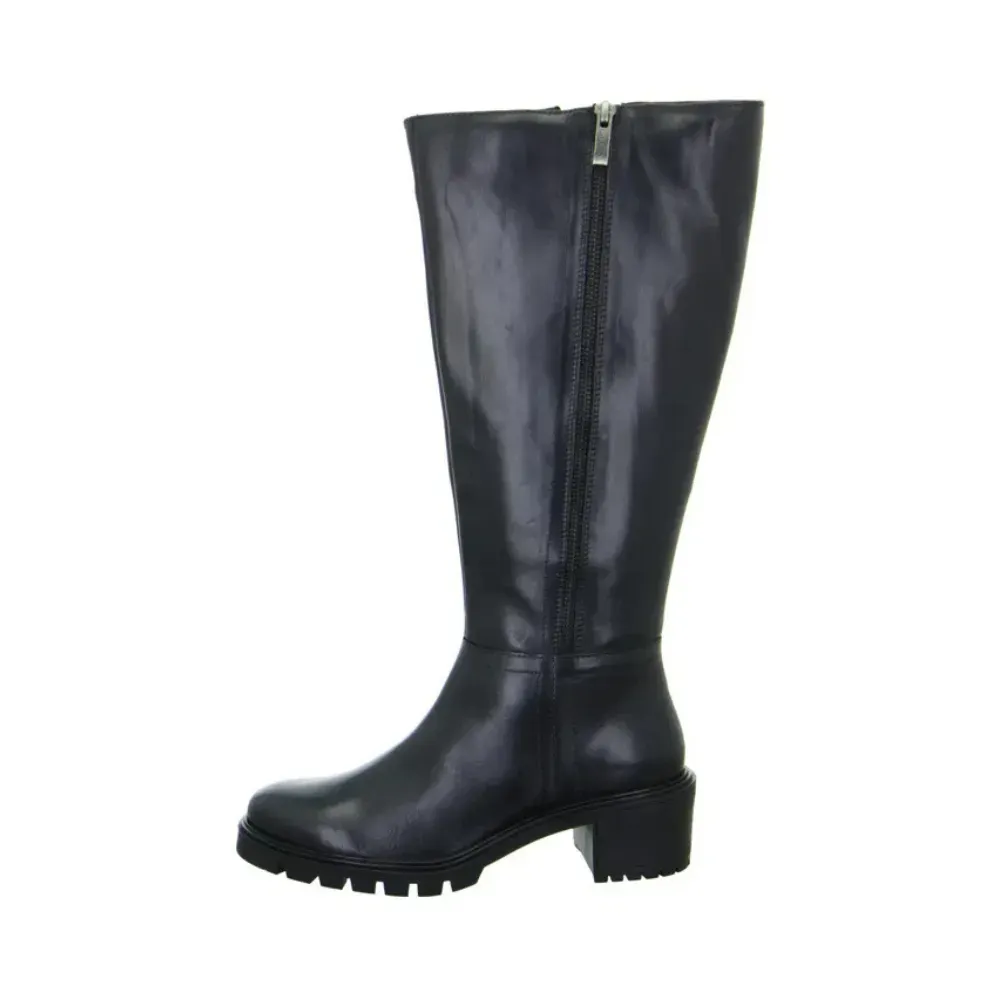 Elegantní dámské zimní kozačky Ara v černé barvě spojují klasický design, pohodlí a funkčnost. Vyrobené z hladké leštěné kůže působí nadčasově a hodí se k elegantnímu i ležérnímu outfitu. Prostorná kulatá špička a širší střih H zajistí pohodlí i pro plnější chodidlo. Praktické zapínání zajišťuje funkční zip na vnitřní straně doplněný pruženkou, zatímco na vnější straně zdobí boty stylový ozdobný zip. Uvnitř se nachází teplá vlasová podšívka a vyztužený vnitřní opatek, které společně se stélkou s podporou podélné klenby, ortopedickým srdíčkem a zesílenou patní částí poskytují celodenní komfort. Technologie HighSoft® kombinuje měkký svršek, polstrovanou stélku a flexibilní podešev pro příjemný pocit při chůzi. Hrubá latexová podešev s platformou 2 cm a širokým podpatkem vysokým 5,5 cm zajišťuje stabilitu a bezpečný krok i na zimním povrchu. Výška kozačky činí 36,5 cm (bez podešve), horní obvod 41 cm odpovídá komfortnímu střihu pro širší lýtka (velikost L). Lepený způsob výroby dodává botám lehkost a flexibilitu. Tyto kozačky jsou ideální volbou pro ženy, které chtějí zůstat v zimě v teple, pohodlí a zároveň elegantní.