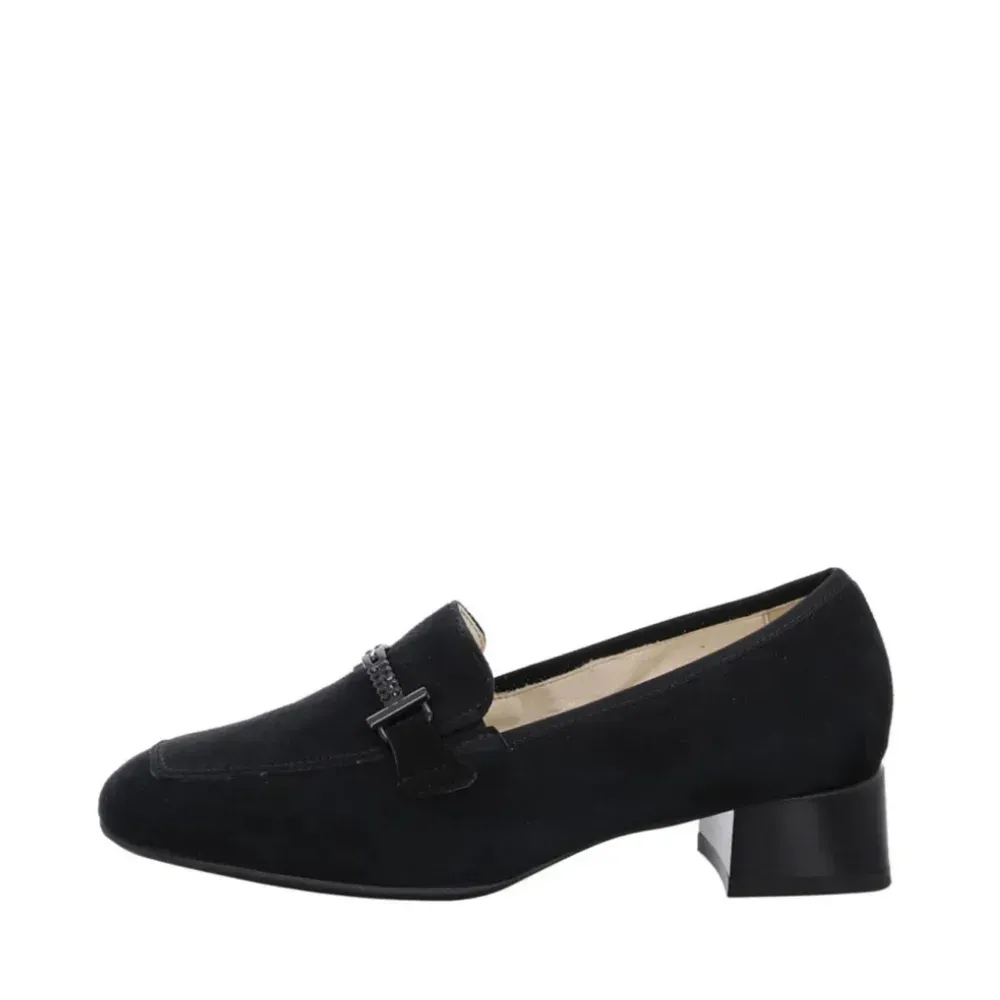 Dámské semišové mokasíny na podpatku ARA Graz v černém provedení spojují klasický mokasínový design s elegantním blokovým podpatkem. Technologie HighSoft a komfortní šíře H zajišťují maximální pohodlí při každodenním nošení.