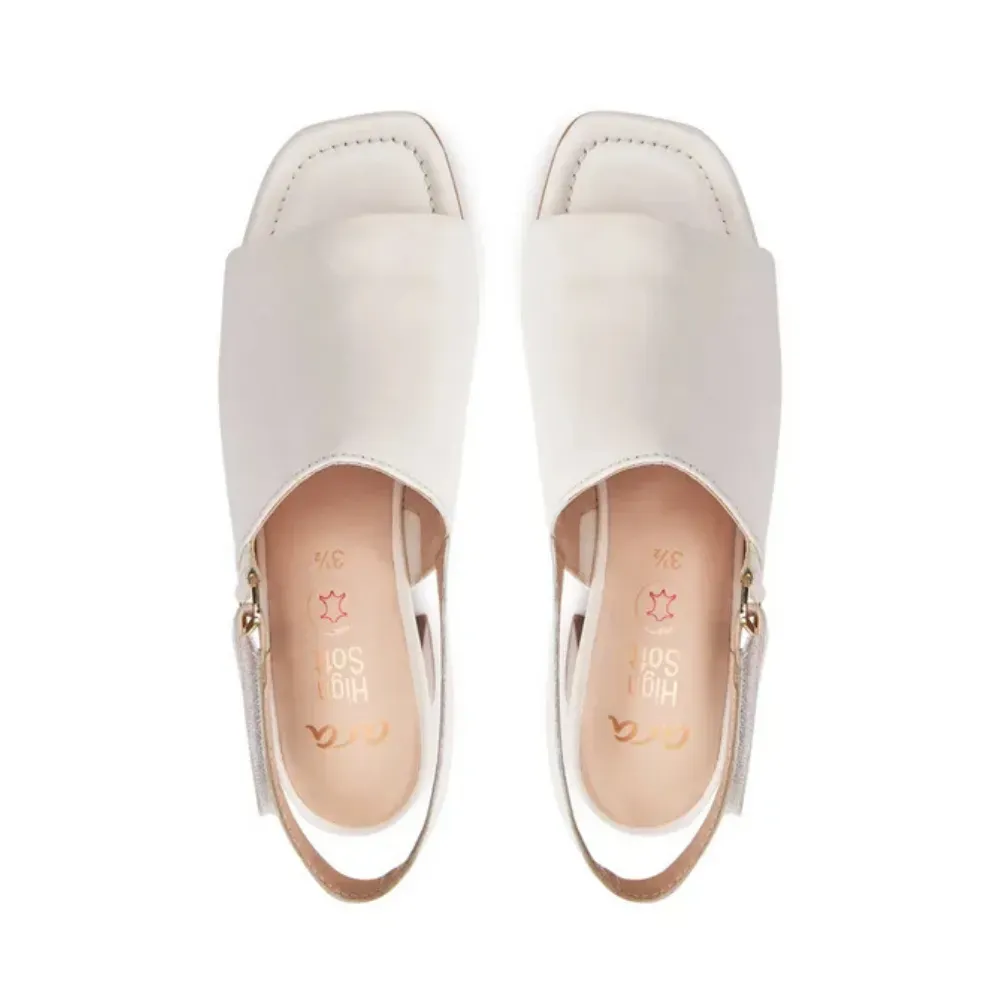 ARA dámské sandály na podpatku širší s volnou patou kožené krémové | 12-20505-08 Brighton