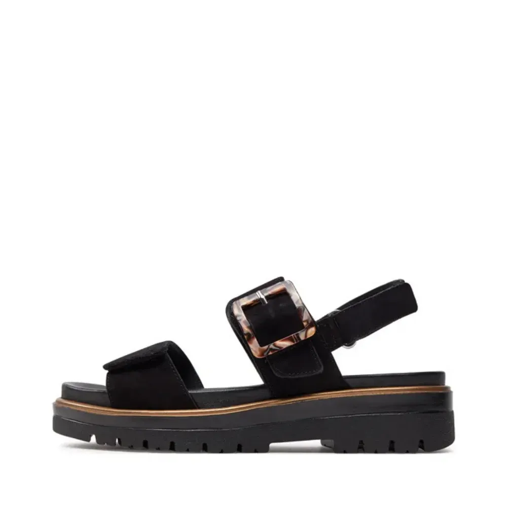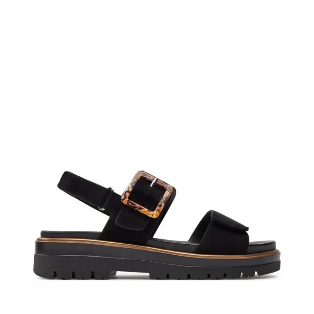 Měkce polstrovaná vyjímatelná stélka v kombinaci s osvědčenou technologií HighSoft poskytuje měkký došlap, podporu klenby a uvolněný pocit při každém kroku. Tři praktické suché zipy umožňují snadné obutí a individuální přizpůsobení noze, zatímco dekorativní přezka na horním pásku dodává sandáli ženský a elegantní vzhled.