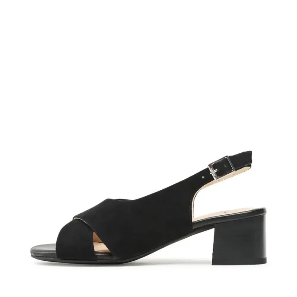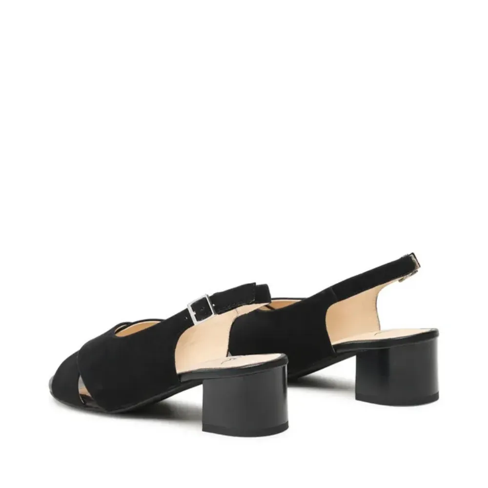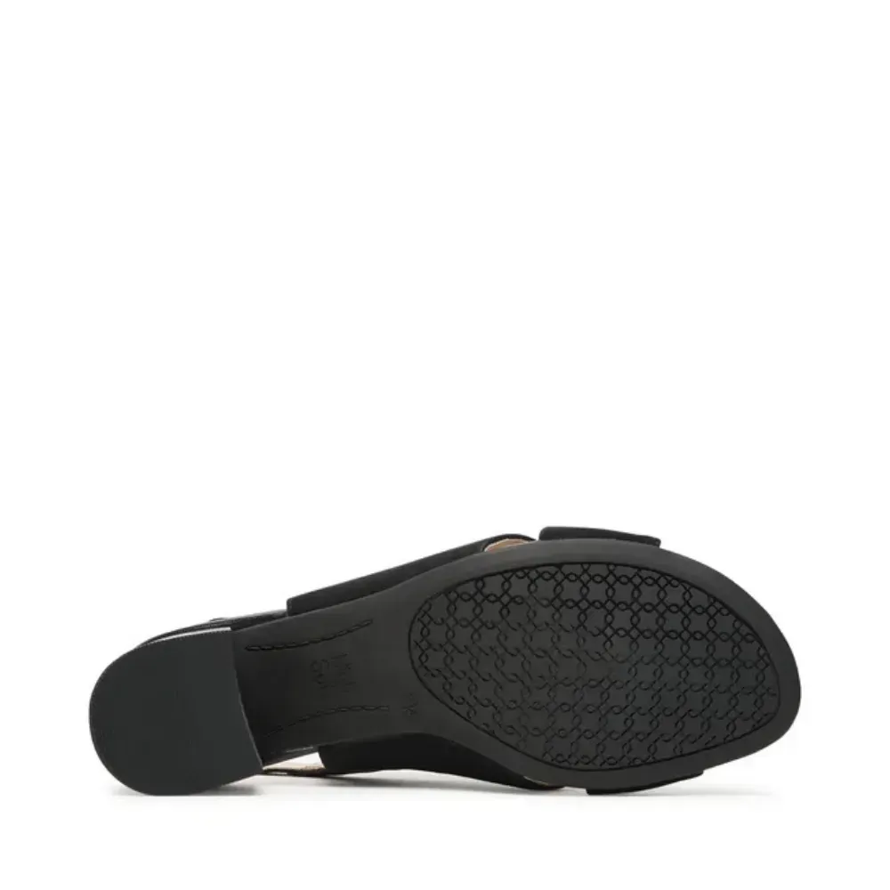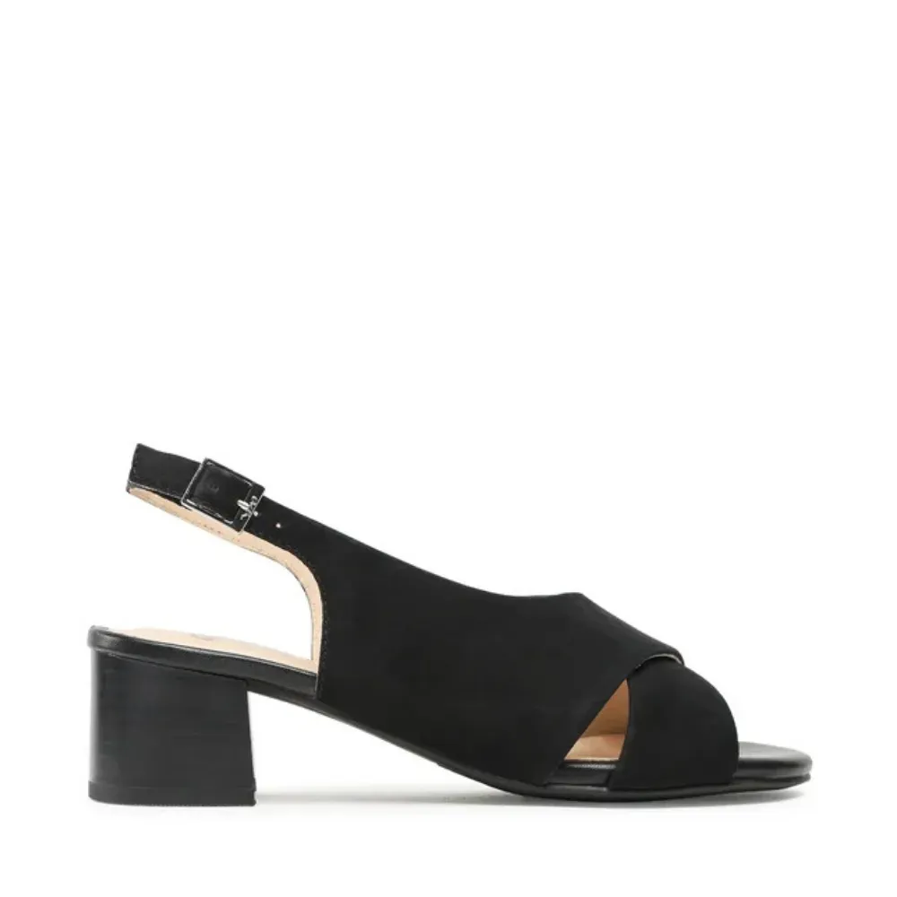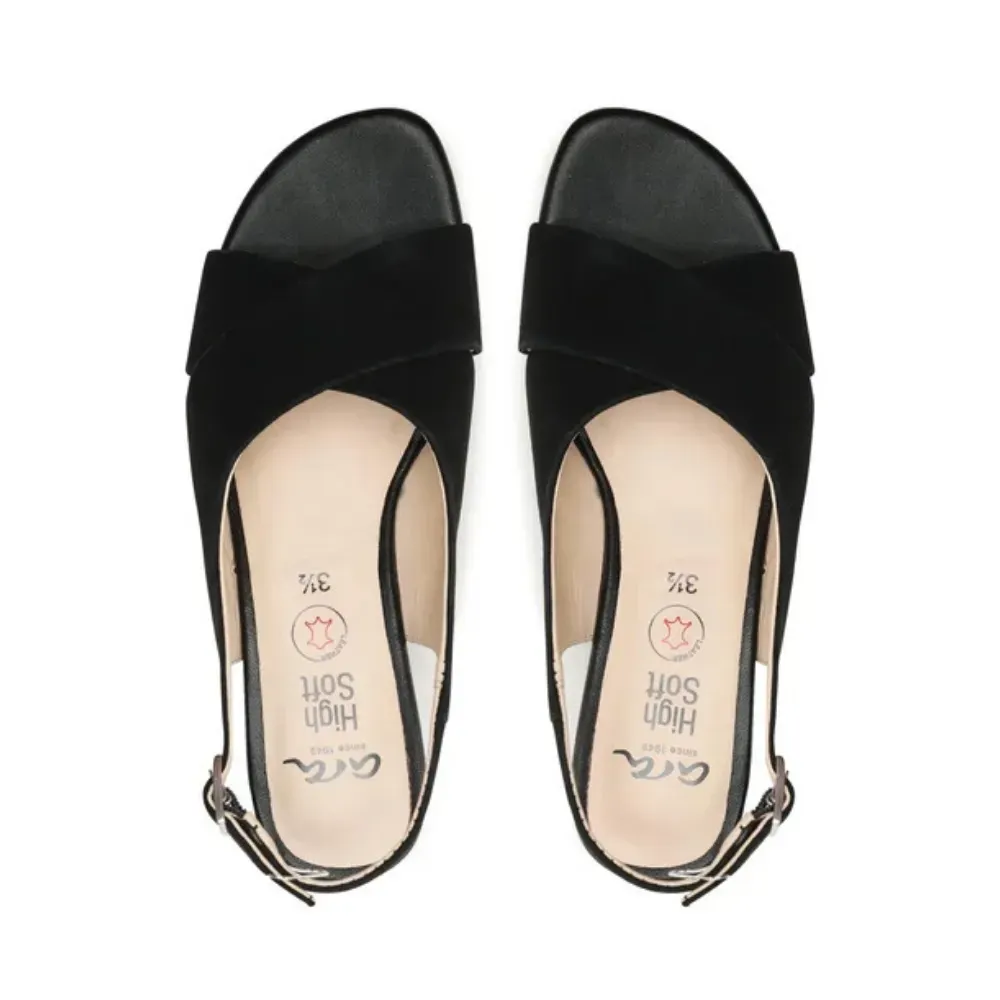 Elegantní dámské sandály ara v černé barvě se semišovým svrškem, kříženými pásky a stabilním blokovým podpatkem. Technologie HighSoft a kožená stélka zajišťují pohodlí po celý den.