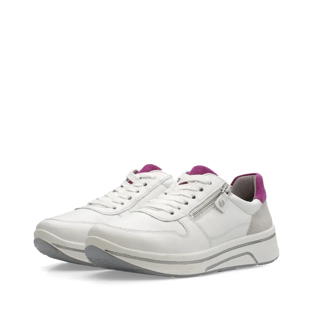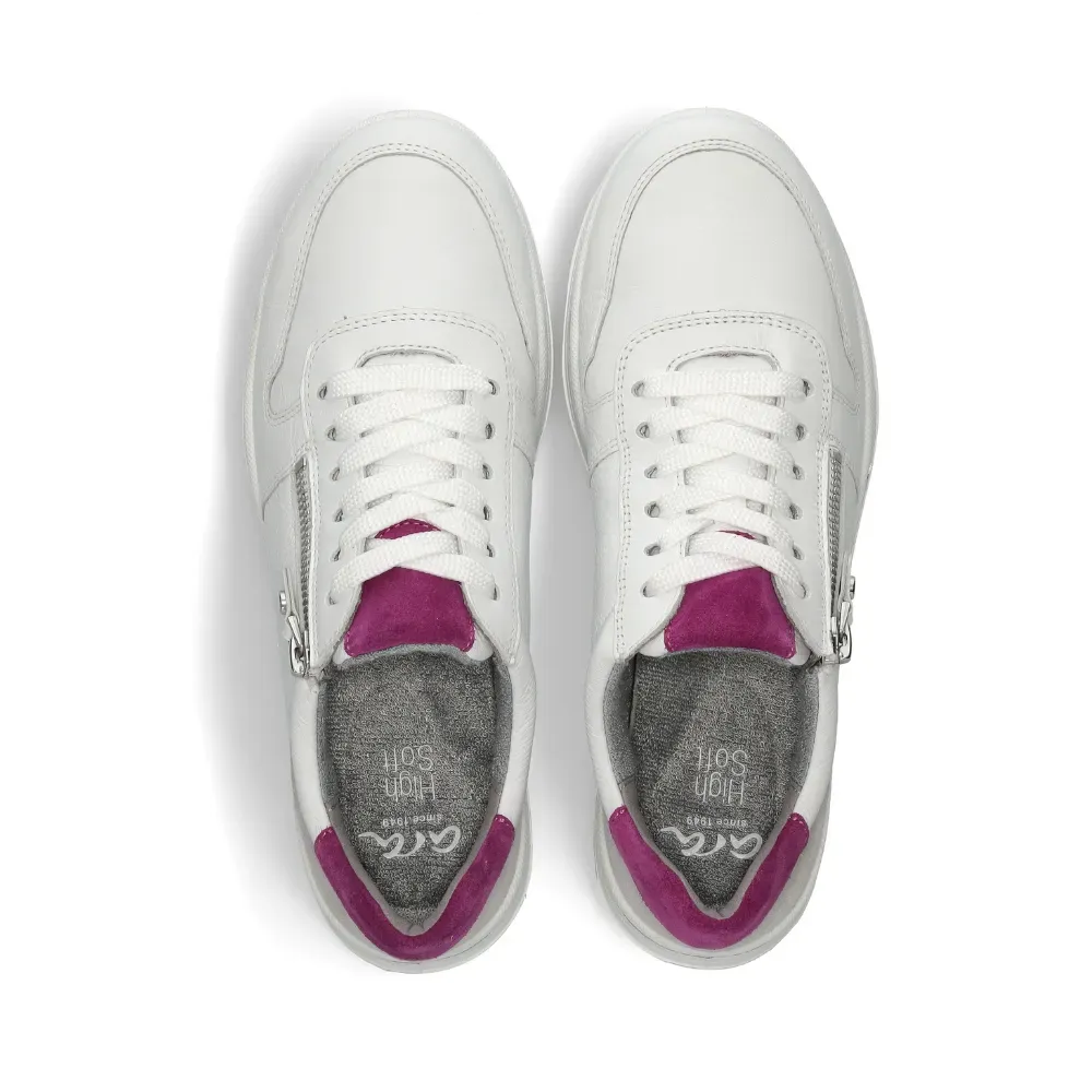 Ultralehký dámský sneaker ara z měkké kůže se zipem a šněrováním, vyjímatelnou froté stélkou a technologií HighSoft. Ideální pro pohodlné celodenní nošení.