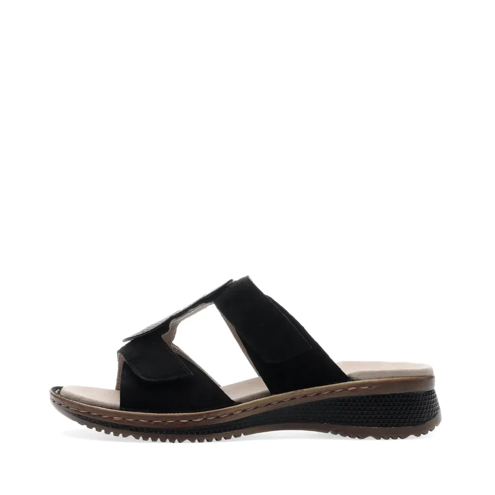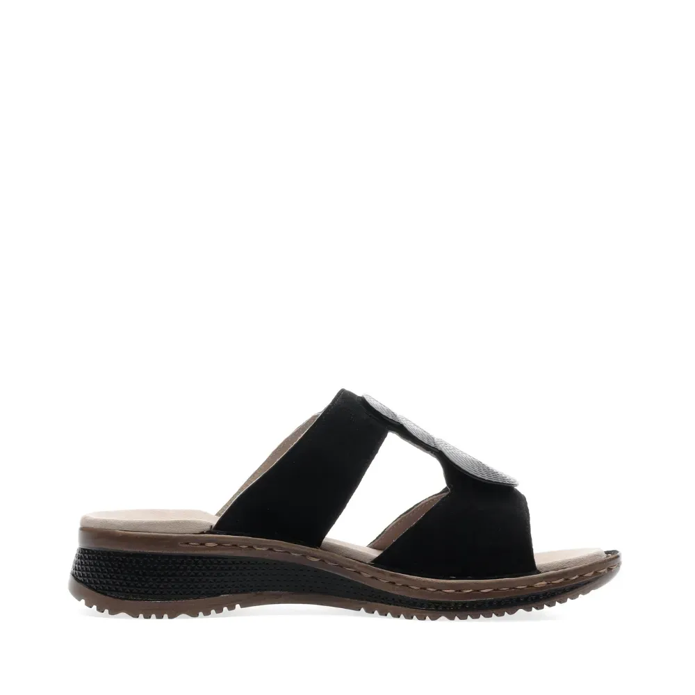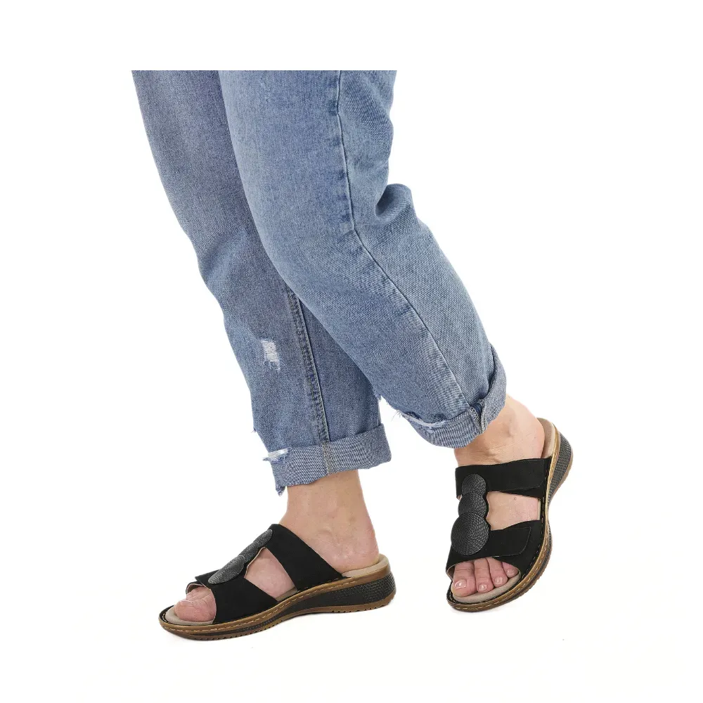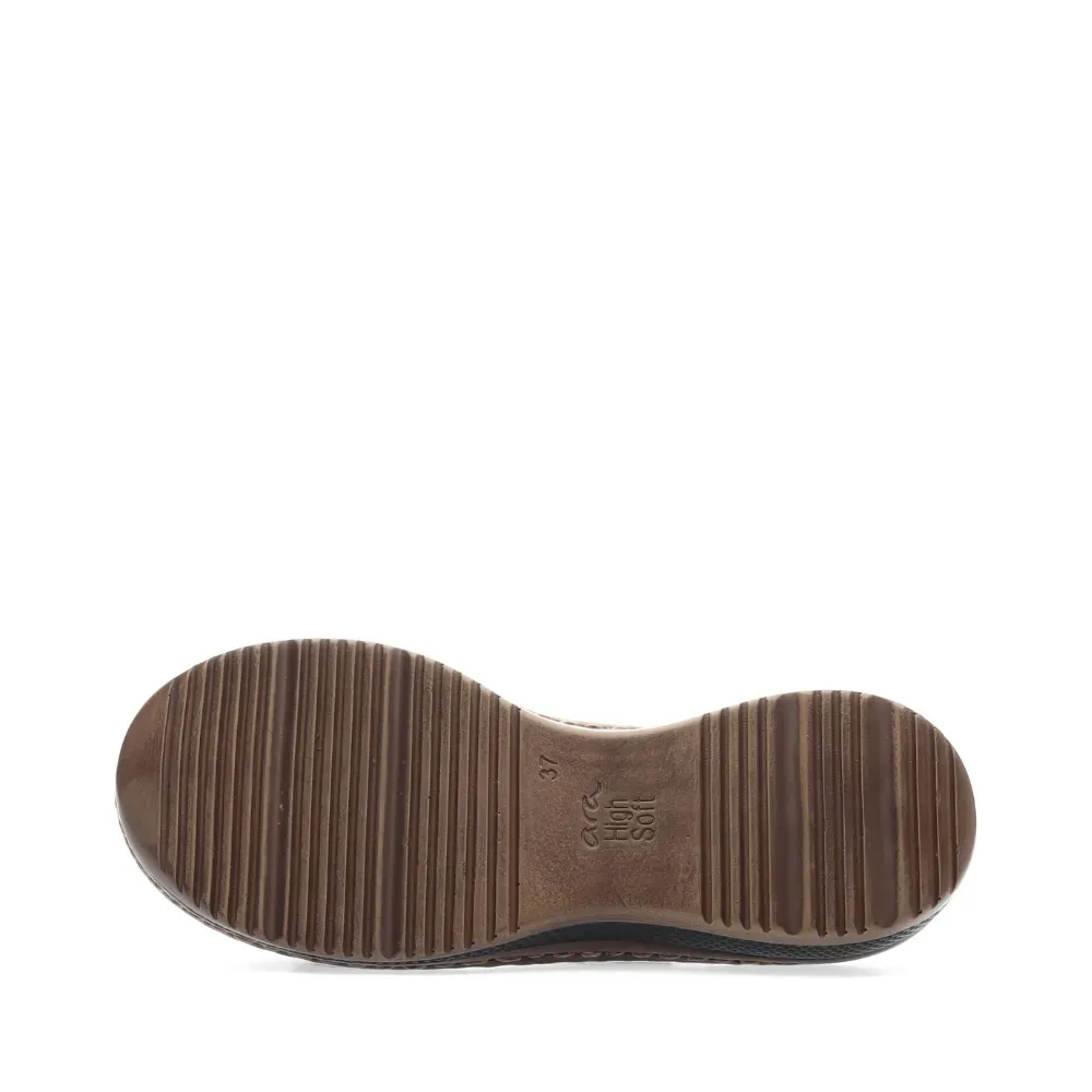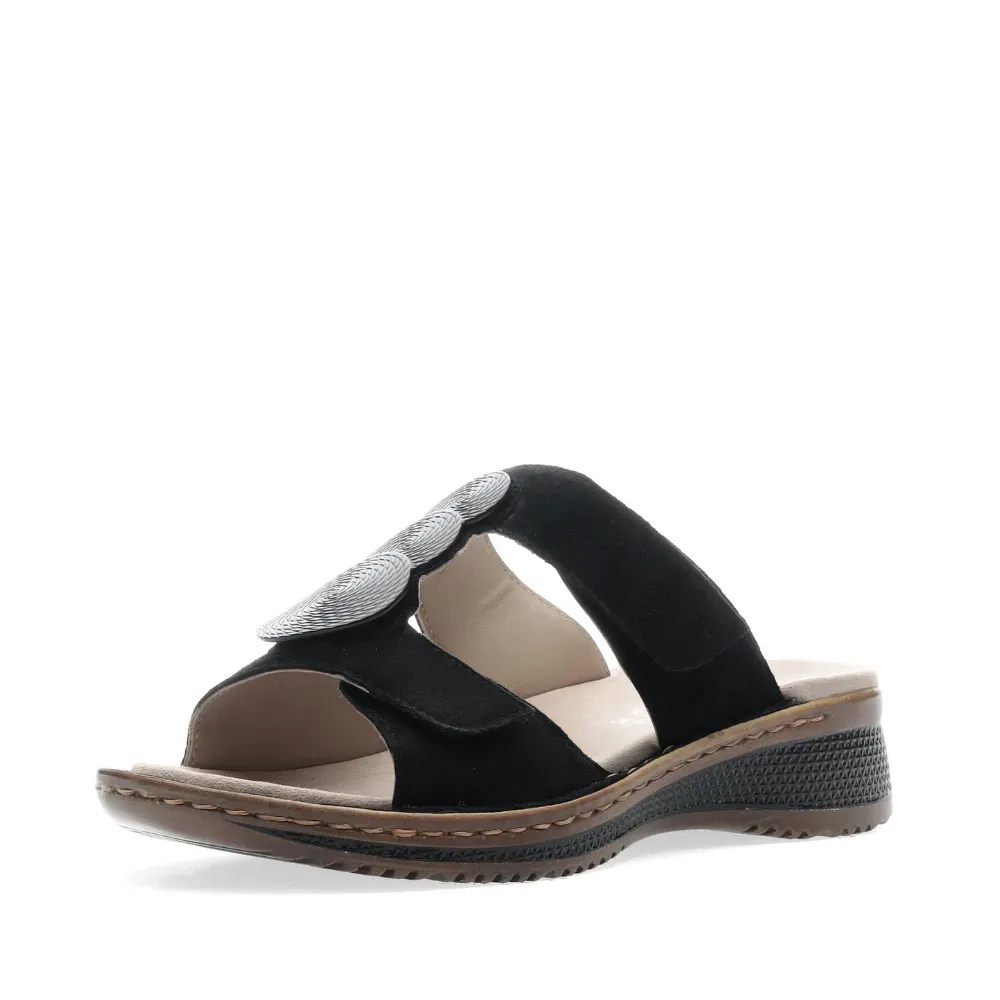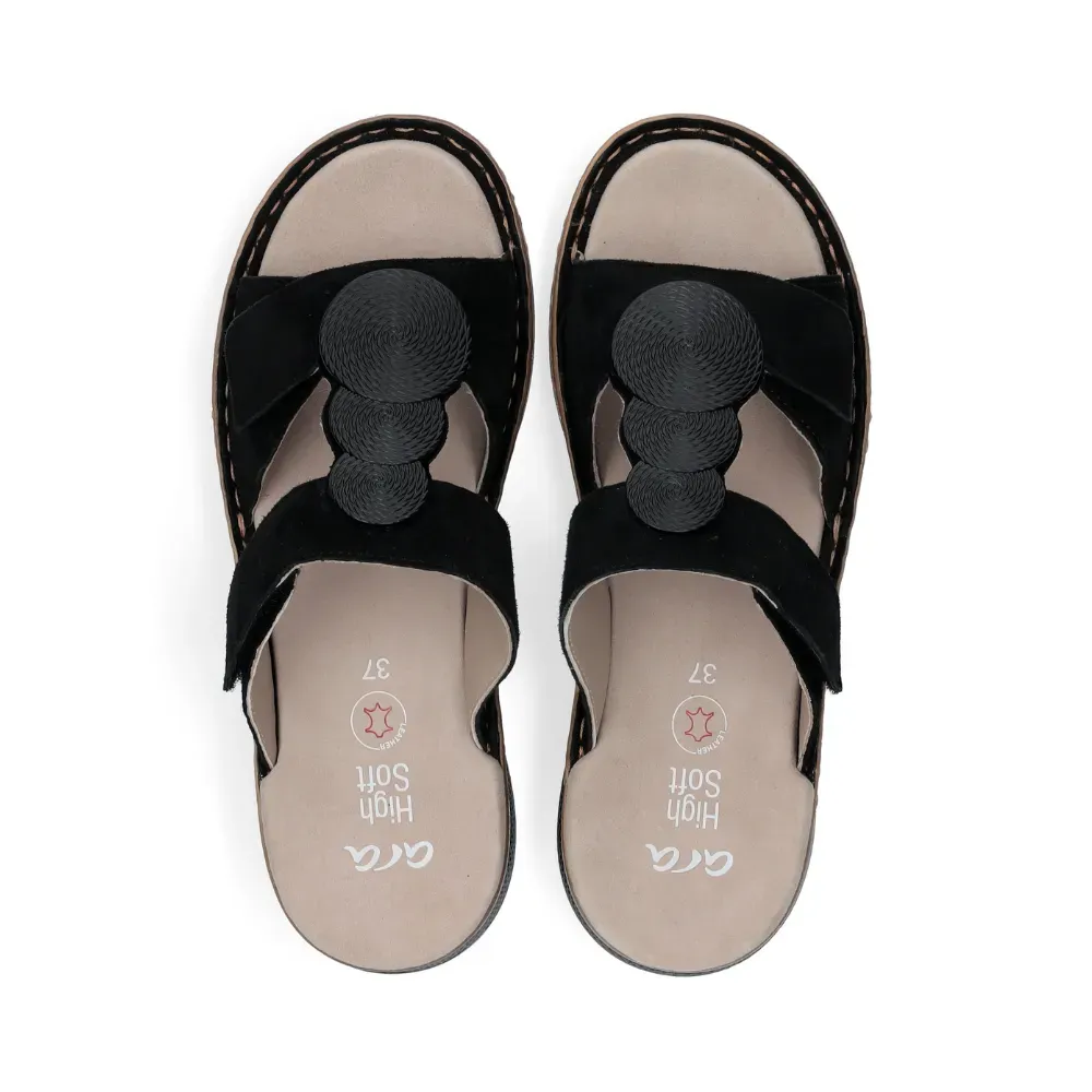 Dámské pantofle ara v černé barvě z jemného semiše s ozdobným detailem a sportovní klínovou podešví. Kožená stélka a technologie HighSoft zajišťují maximální pohodlí po celý den.