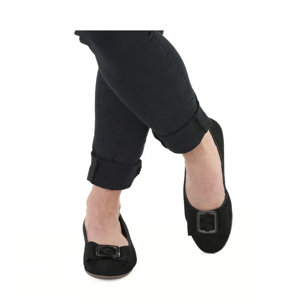 Baleríny jsou ideální volbou pro ženy, které hledají spojení elegance, pohodlí a univerzálního stylu. Jemný semišový svršek v černé barvě působí velmi sofistikovaně a snadno se kombinuje s každodenním i formálnějším outfitem.