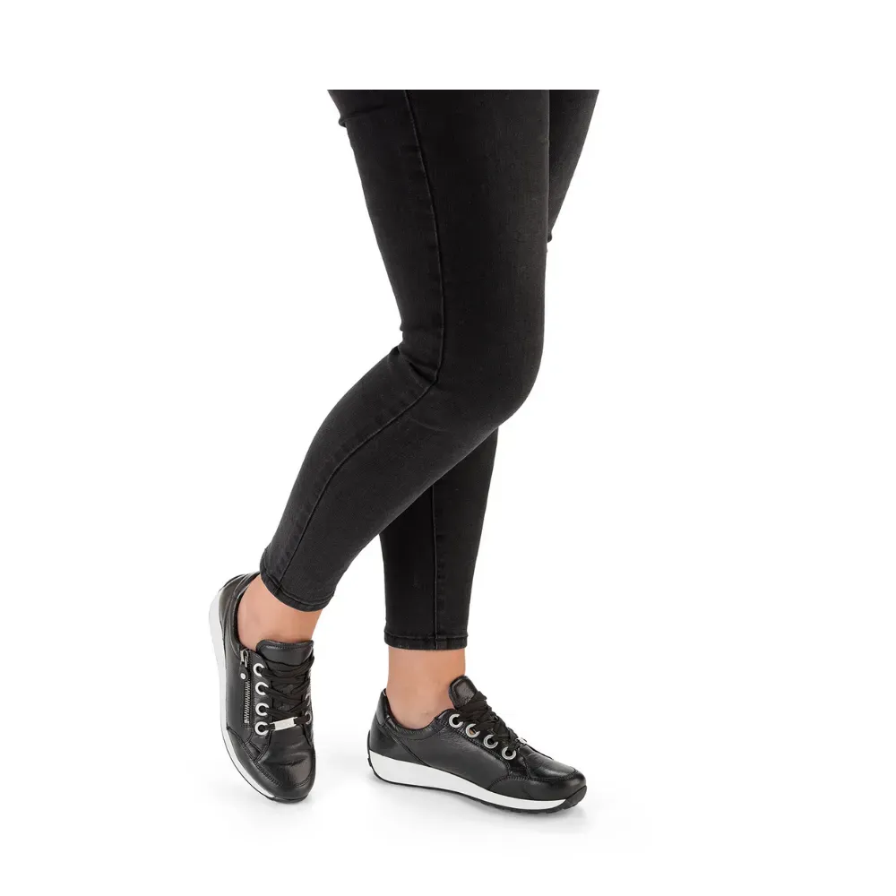 ARA dámské tenisky s postranním zipem kožené černé | 12-34587-01 Osaka